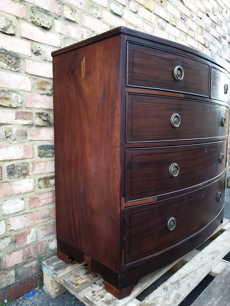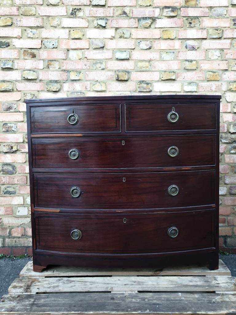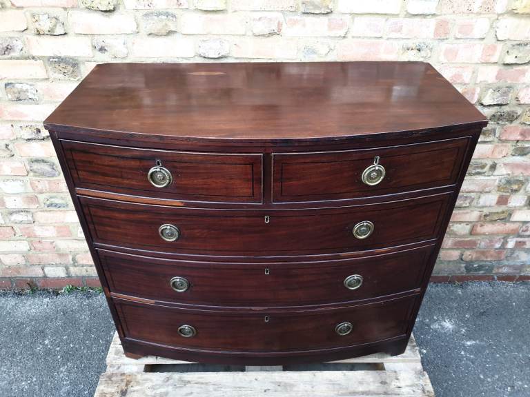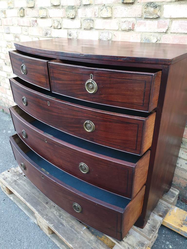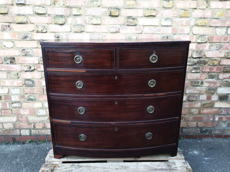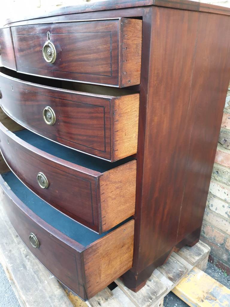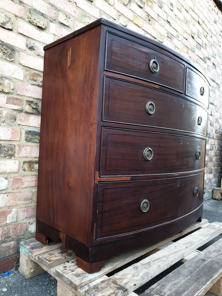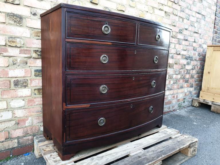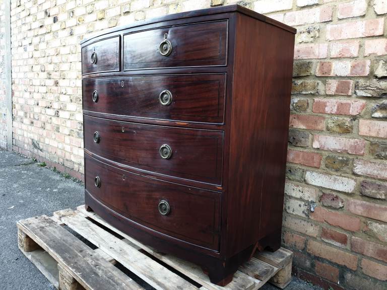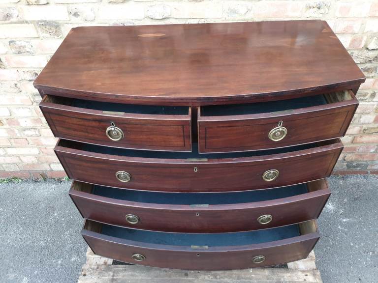 Beautiful antique Georgian mahogany bow front large Commode chest of drawers.
