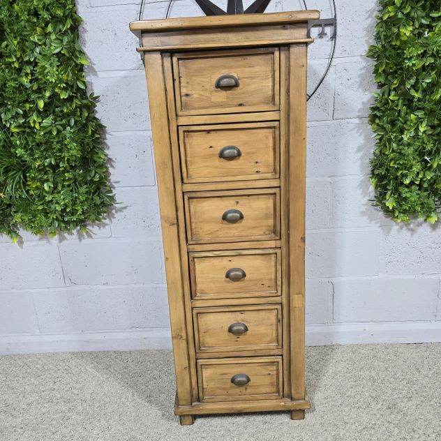 Ever wake up and wish your bedroom felt calmer, more put-together and a touch more grown-up? This tallboy slides into a bedroom corner and brings six tidy drawers to the party, turning chaos into order without shouting about it.