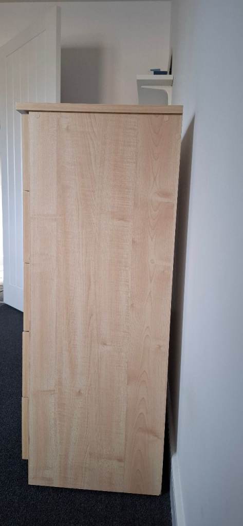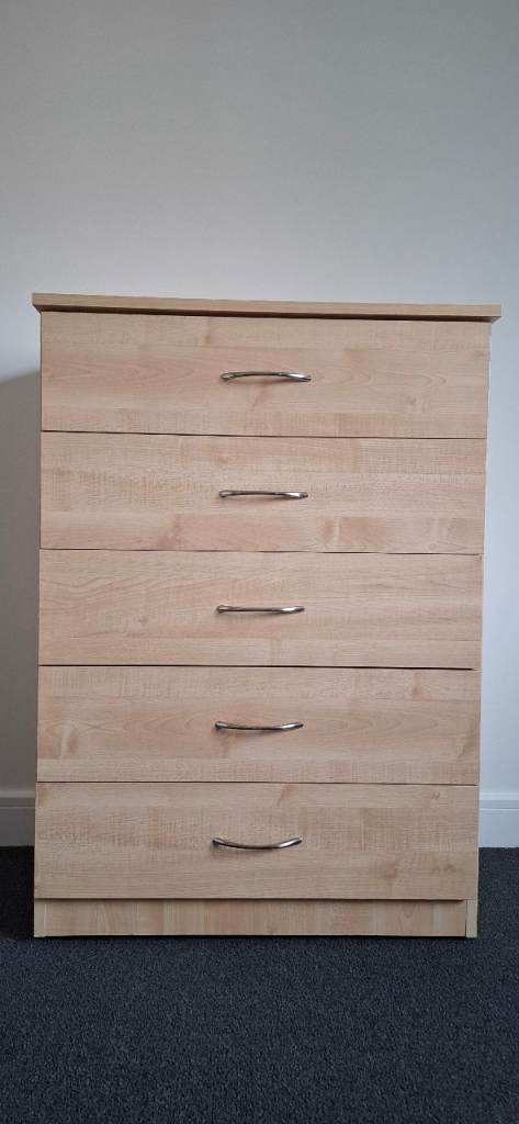 Light wood chest of drawers with 5 spacious drawers.