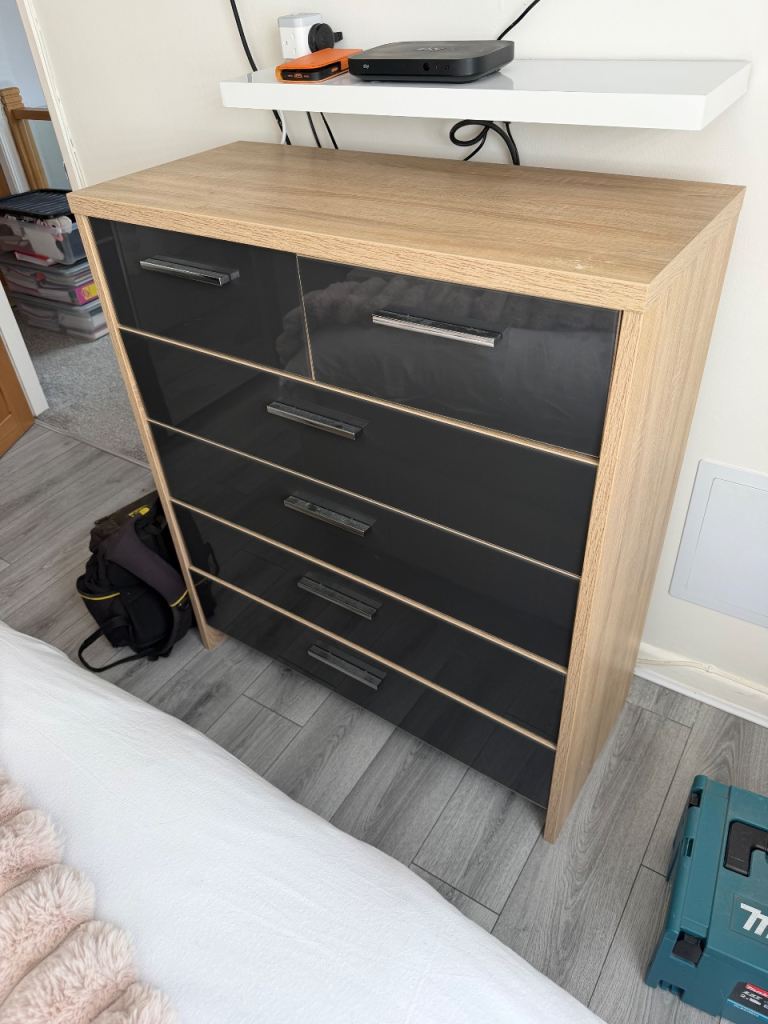 Posting for under a monthChest of drawers & 2 x bedside tables