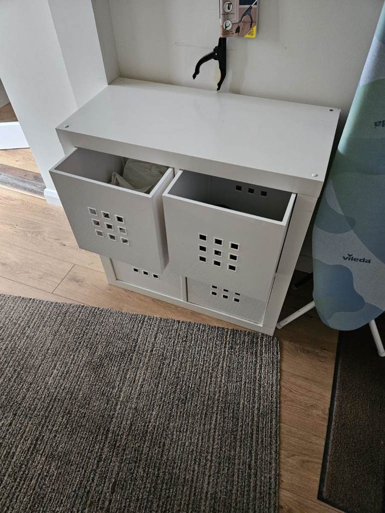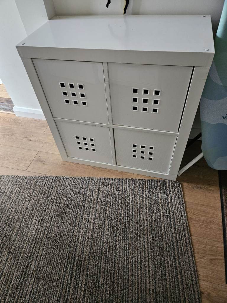 Handy Kallax storage unit in white with four plastic pull-out cube bins