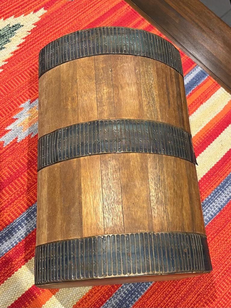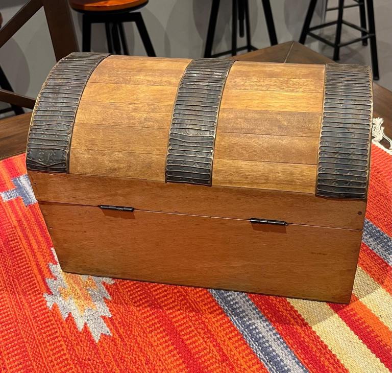 Posting for 8+ yearsWooden Trunk Chest with Metal Bands – Good Condition