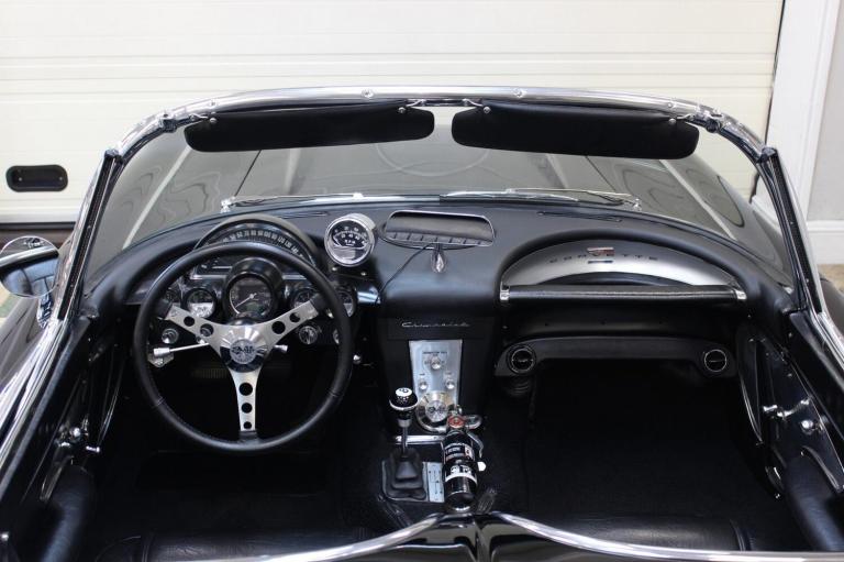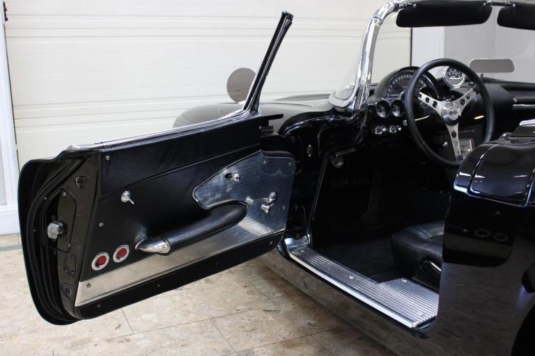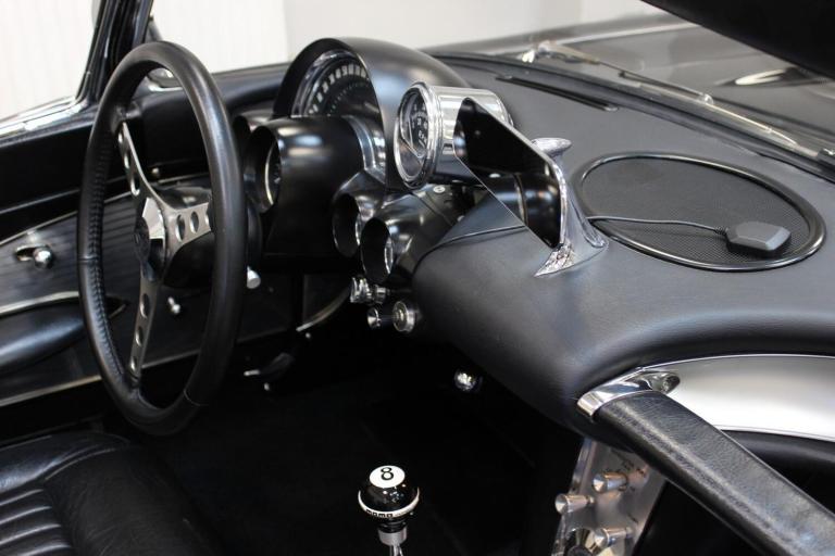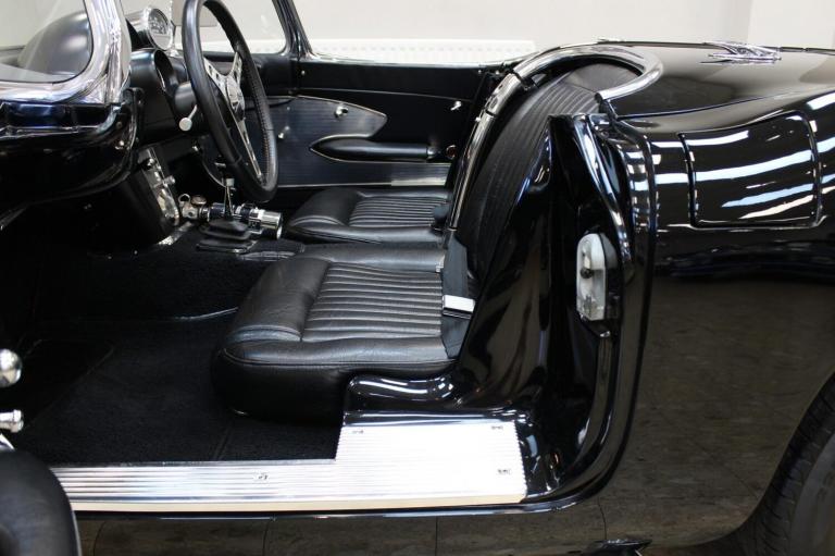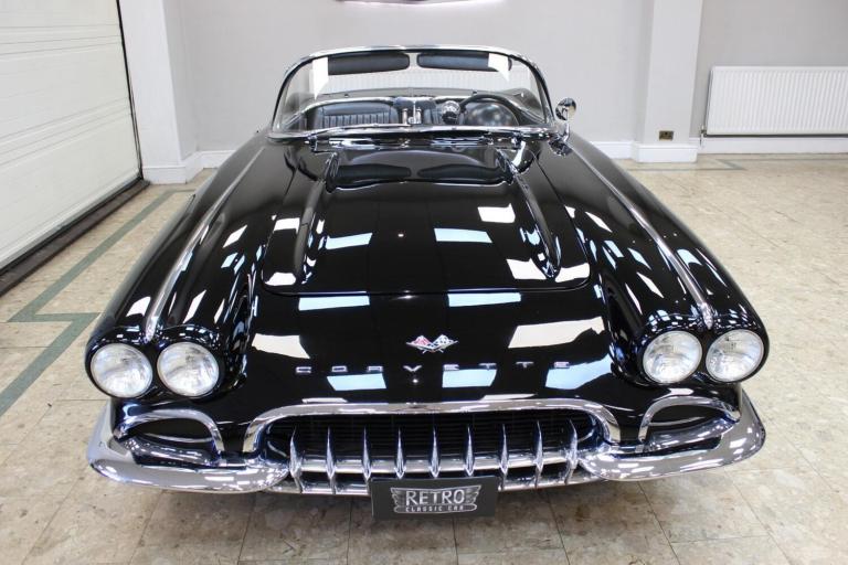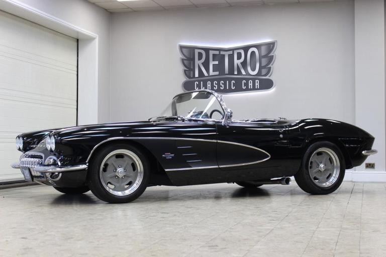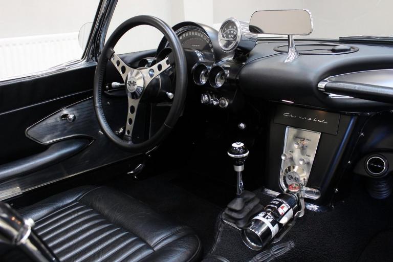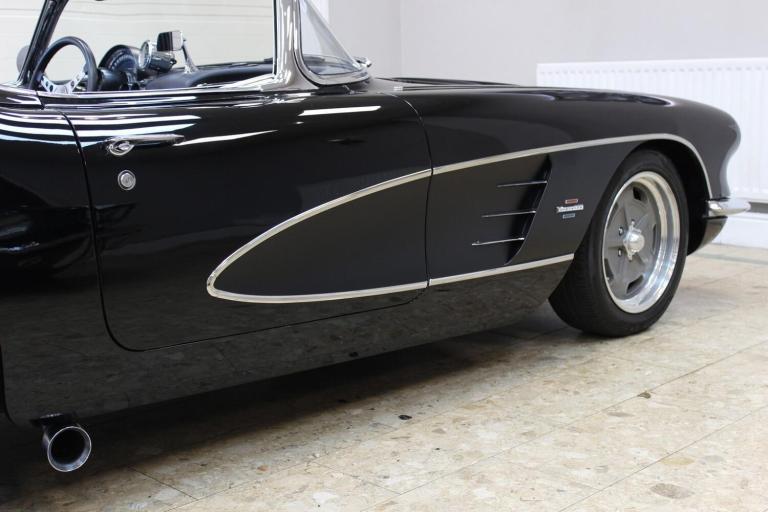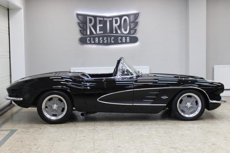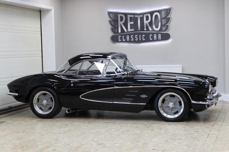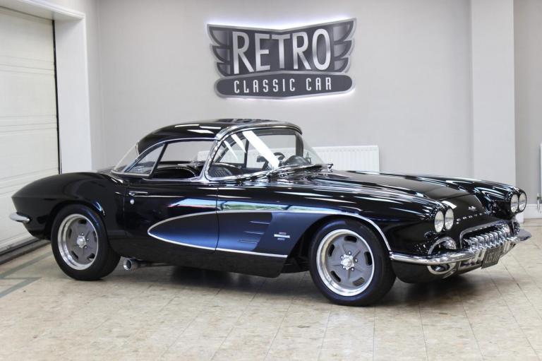 1961 Chevrolet Corvette C1 Restomod 350 V8 4-speed Manual. Fully restored and presented in the highly desirable colour combination of black on black. Body off and comprehensively restored in the States between 2011 to 2019, covering over 6000 miles since and comes supplied with a detailed photographic record of the works carried out. The upgrades listed below were added at the same time making this not only a great looking sportscar but one built for improved drivability.