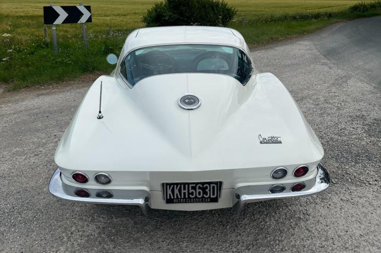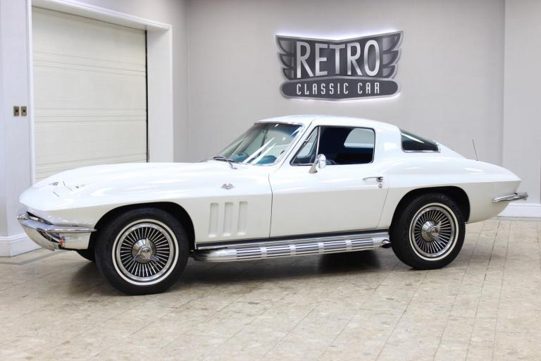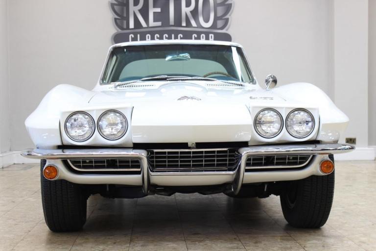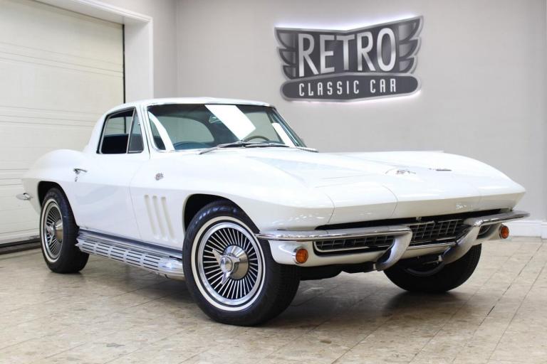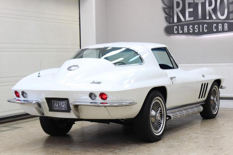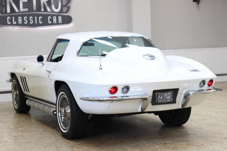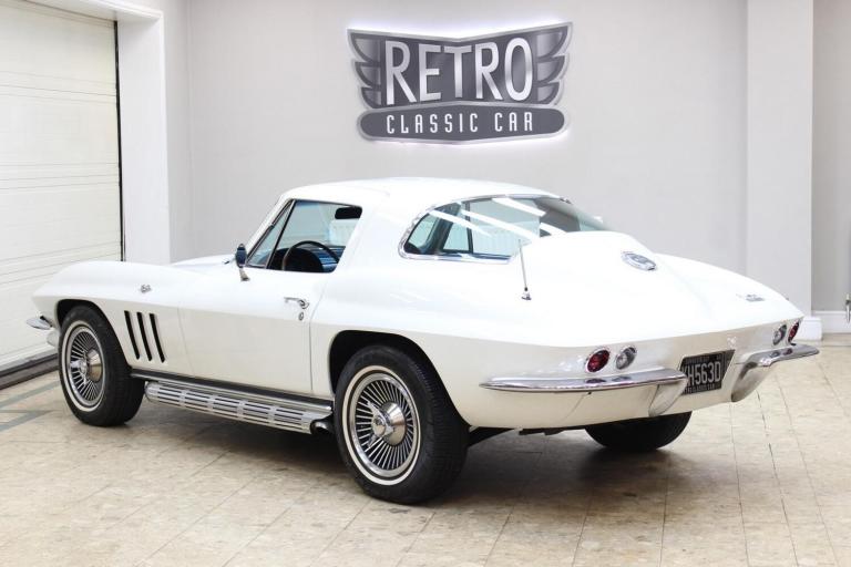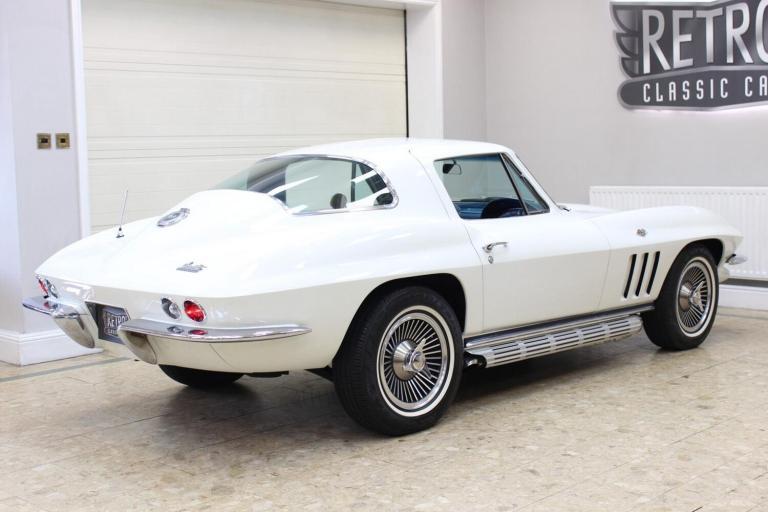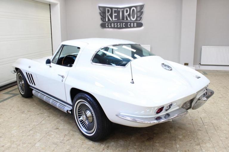1966 Chevrolet Corvette Stingray C2 327 V8 Manual. Invited and displayed at the world renowned London Concours. Finished in factory Ermine white with Blue interior. Corvette side exhausts and Knock-off wheels fitted with period white-band tyres, the high specification also includes electric windows, power steering, telescopic steering wheel and disc brakes.