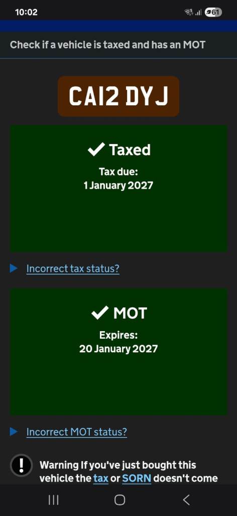 This vehicle has not been reported stolen, scrapped, exported or flagged as unroadworthy.