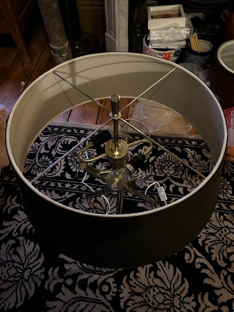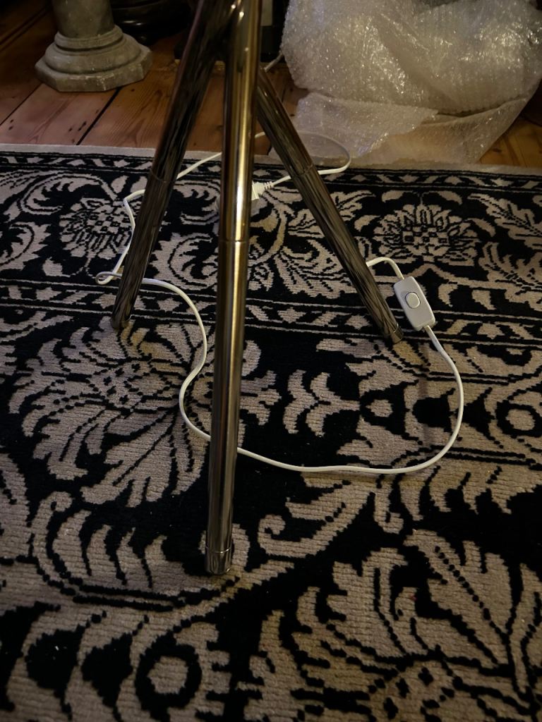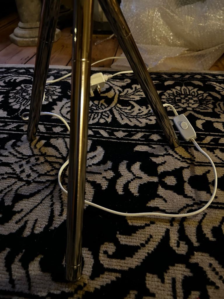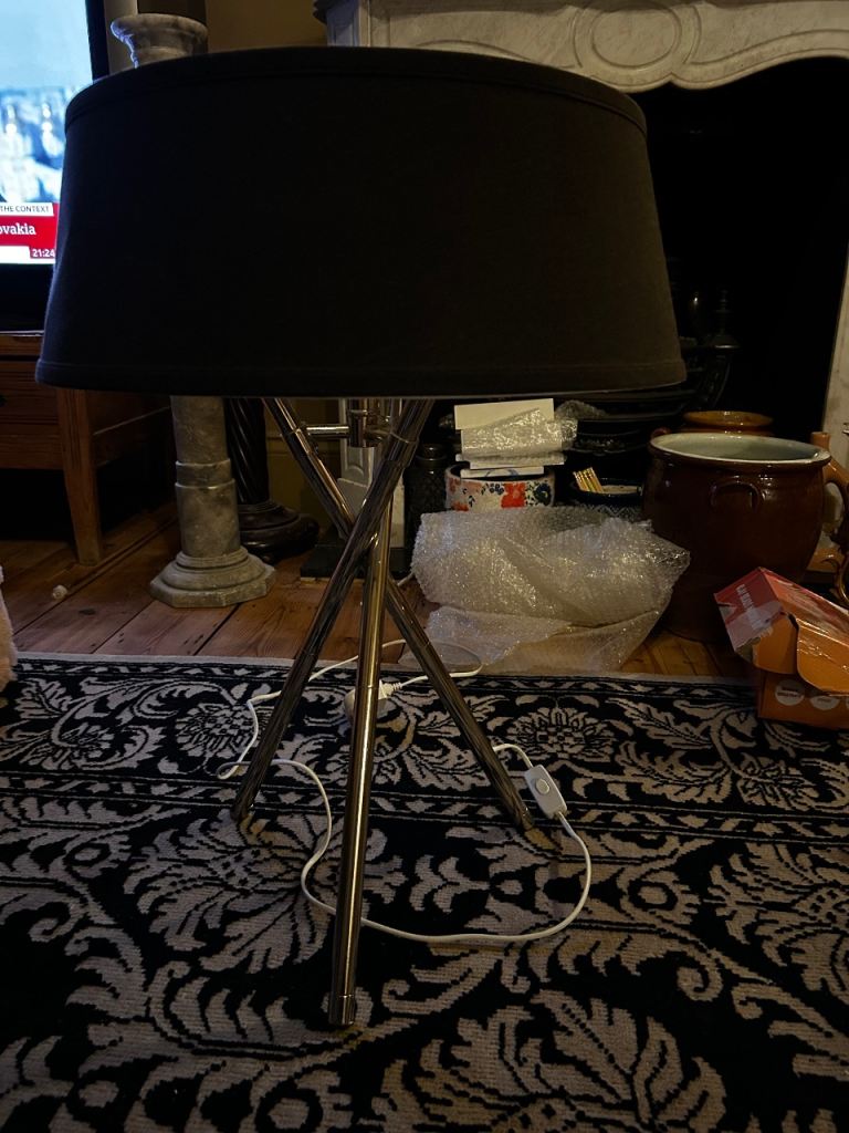 Much loved Graham & Green chrome with black shade. Tripod style