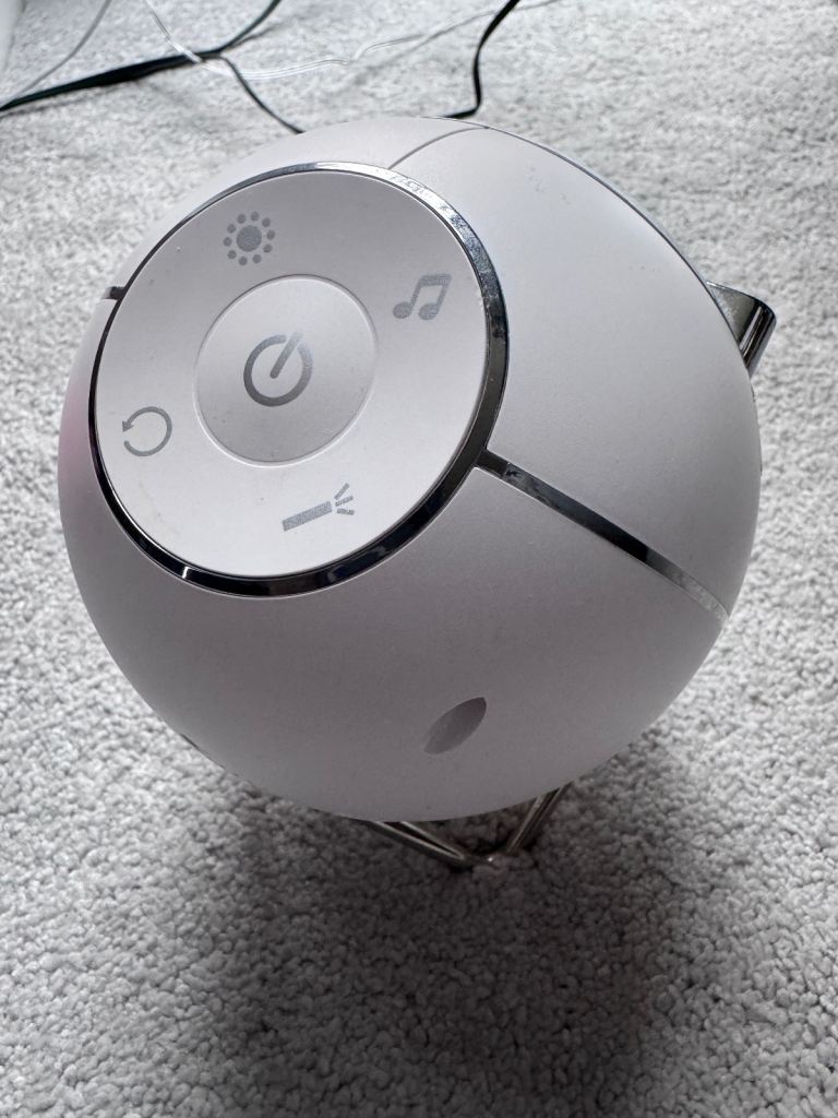 Childrens Projection Nightlight, with sound effects and remote control. In white plastic, connects via USB-C. In full working order.