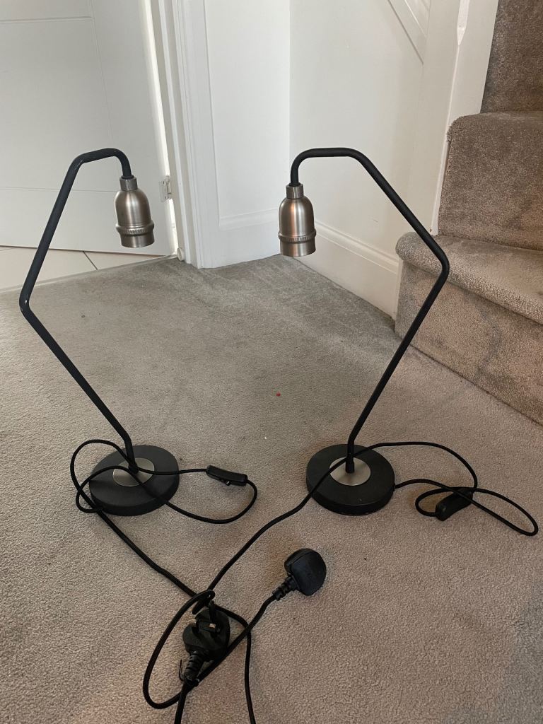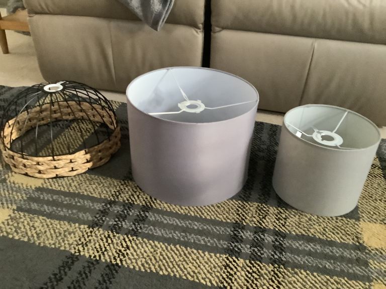 3 brand new never used lamp shades, 2 in usual make, these are 8” and 12”. 1 made from metal and basket this one is also 12”. All for £20. Collection only Lu5 area Dunstable. These can be used on main lights or lamps fittings on.