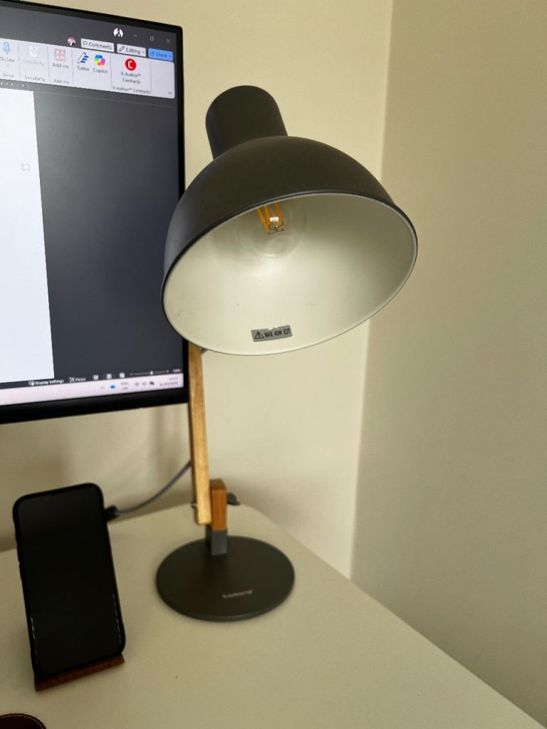 Selling my Tomons Desk Lamp with adjustable wooden arm. Stylish, modern design – perfect for desks, home offices or bedside tables.