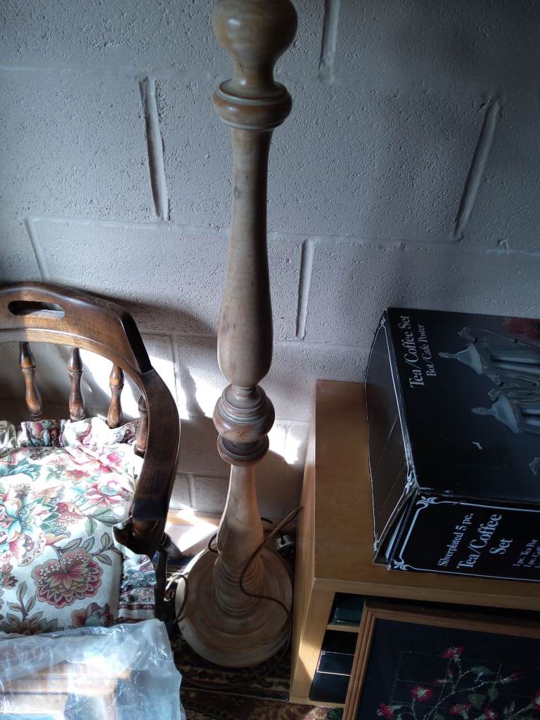 Floor lamp, 155 cm tall. In excellent condition, high quality wood turned base and good lamp shade.