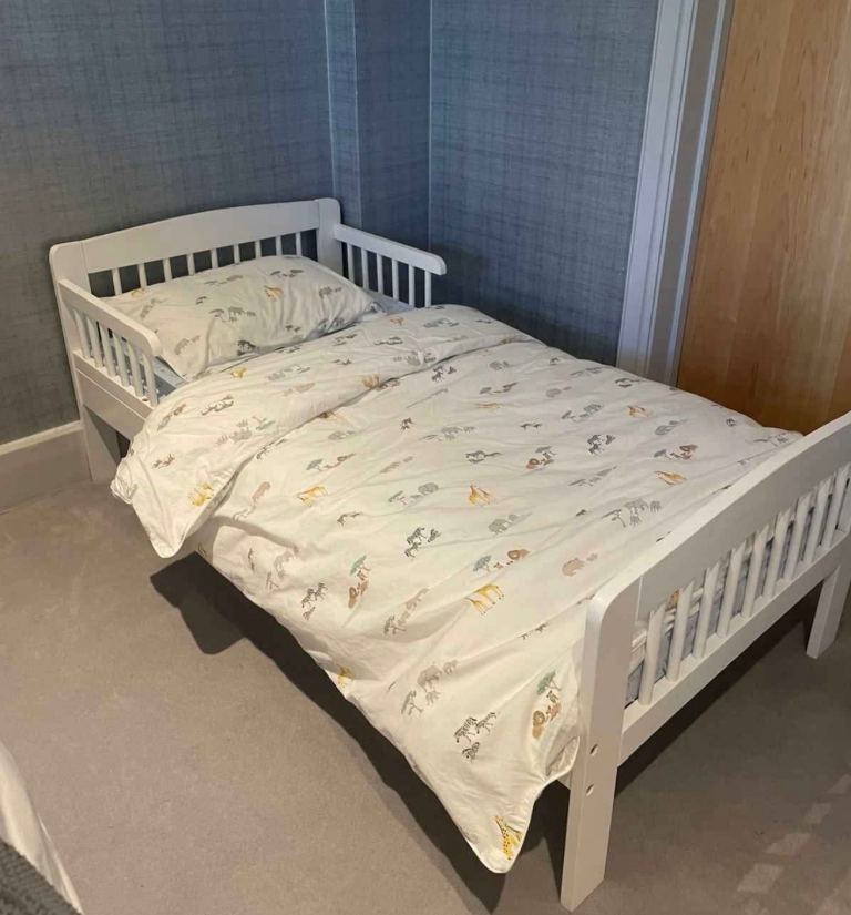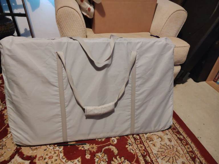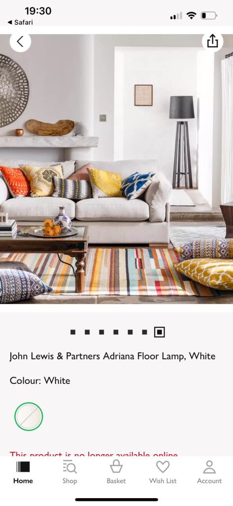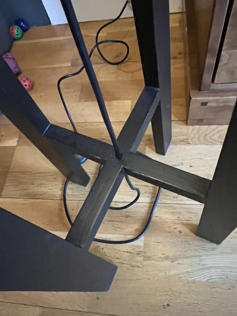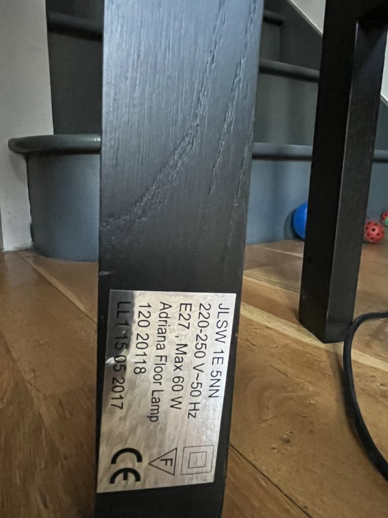 Easel style contemporary floor lamp. Wood base/linen shade. Was damaged in transit so bulb area taped (3rd picture) but not visible and works perfectly. Collection from East Greenwich.