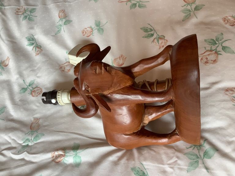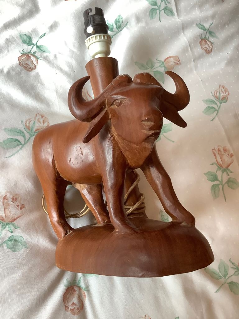 This is a wooden Buffalo Table Light made in Kenya, in working order, just needs new shade