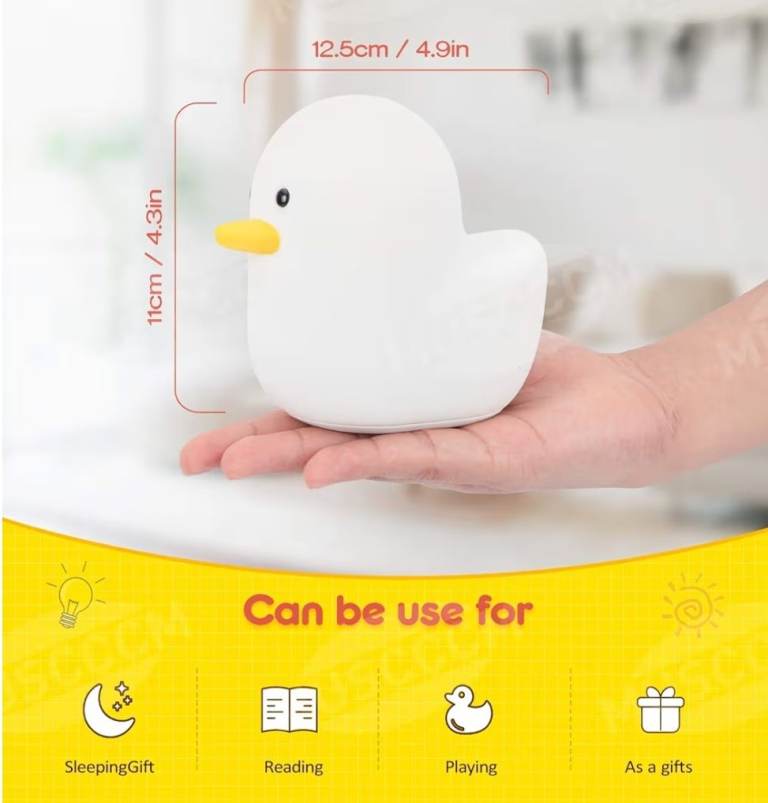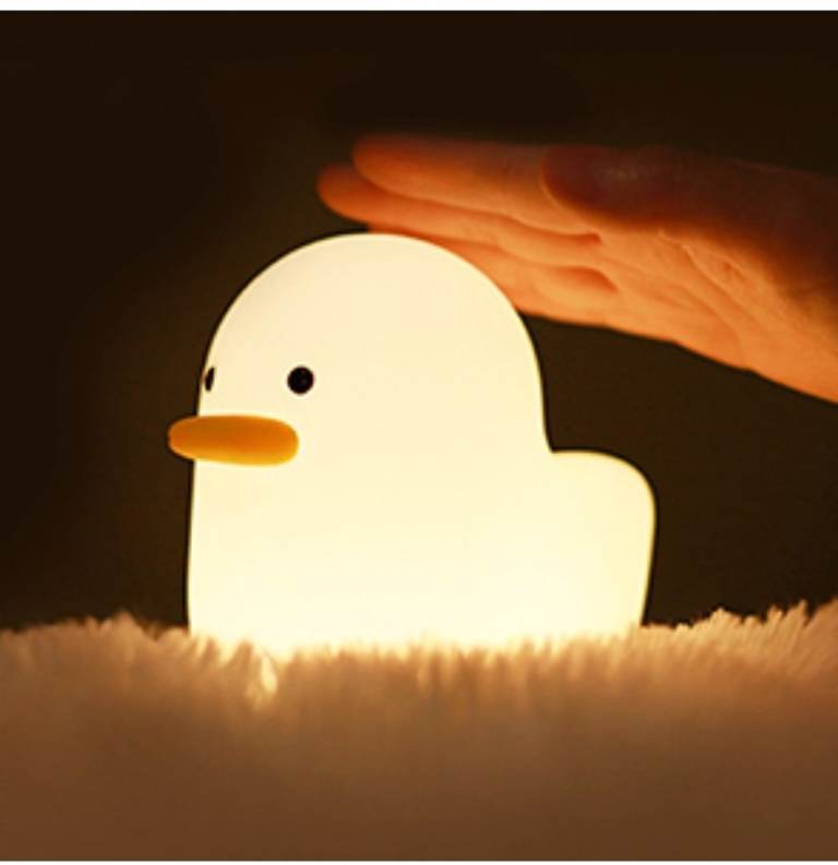 LED Night Light, Smart Bedside Lamp with Touch Sensor Timer, Silicone Rechargeable Duck Night Light, White, for Bedroom