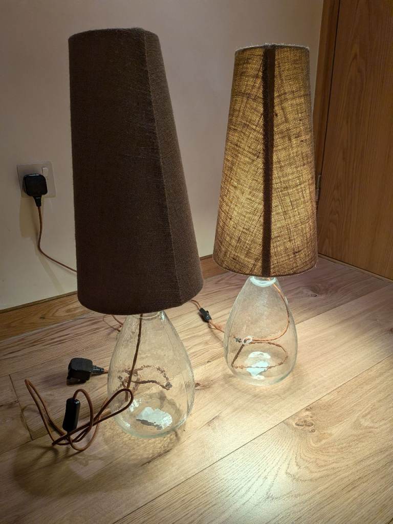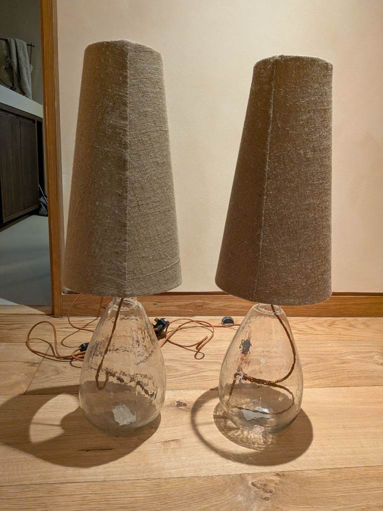 Hammered clear glass and natural jute lamp shade, barely used. Original price £200 each (lamp + shade) but selling the pair for £80. Bulb included.