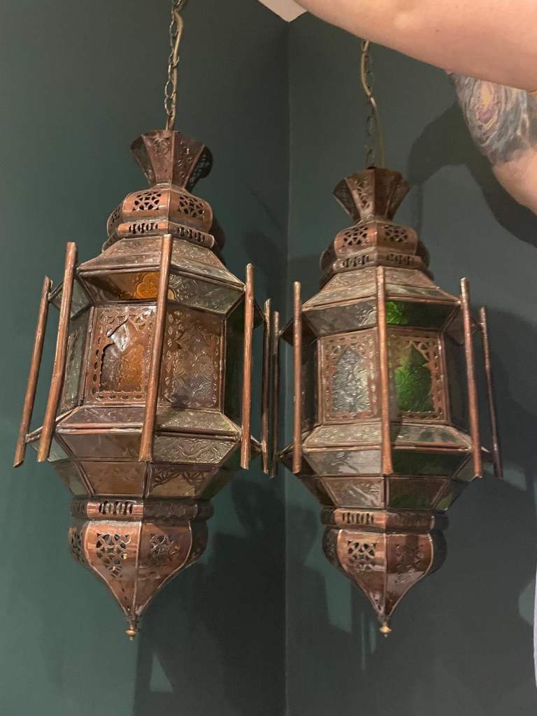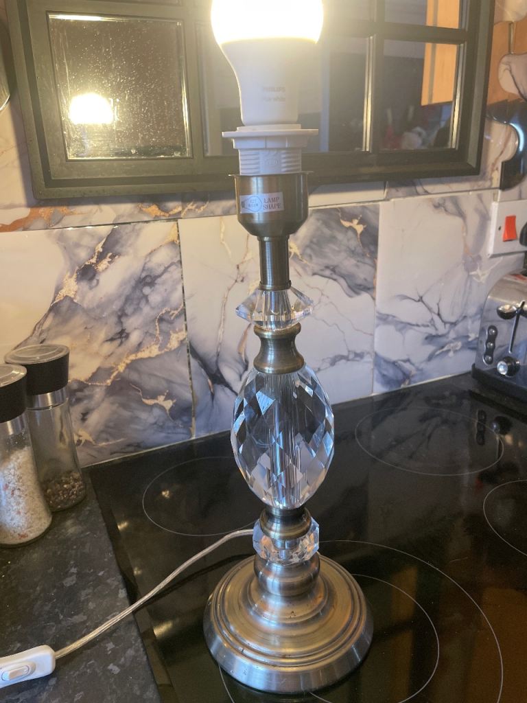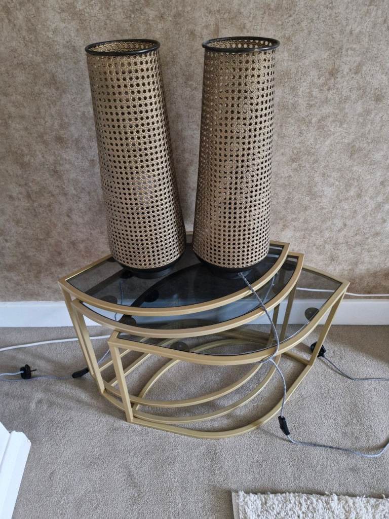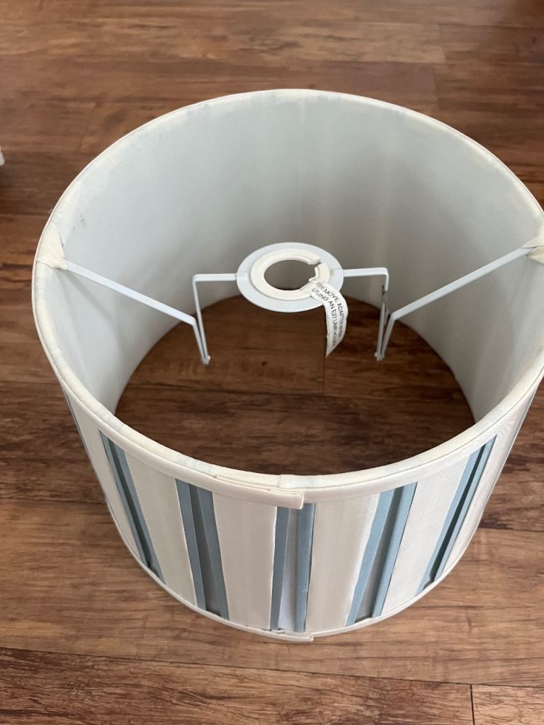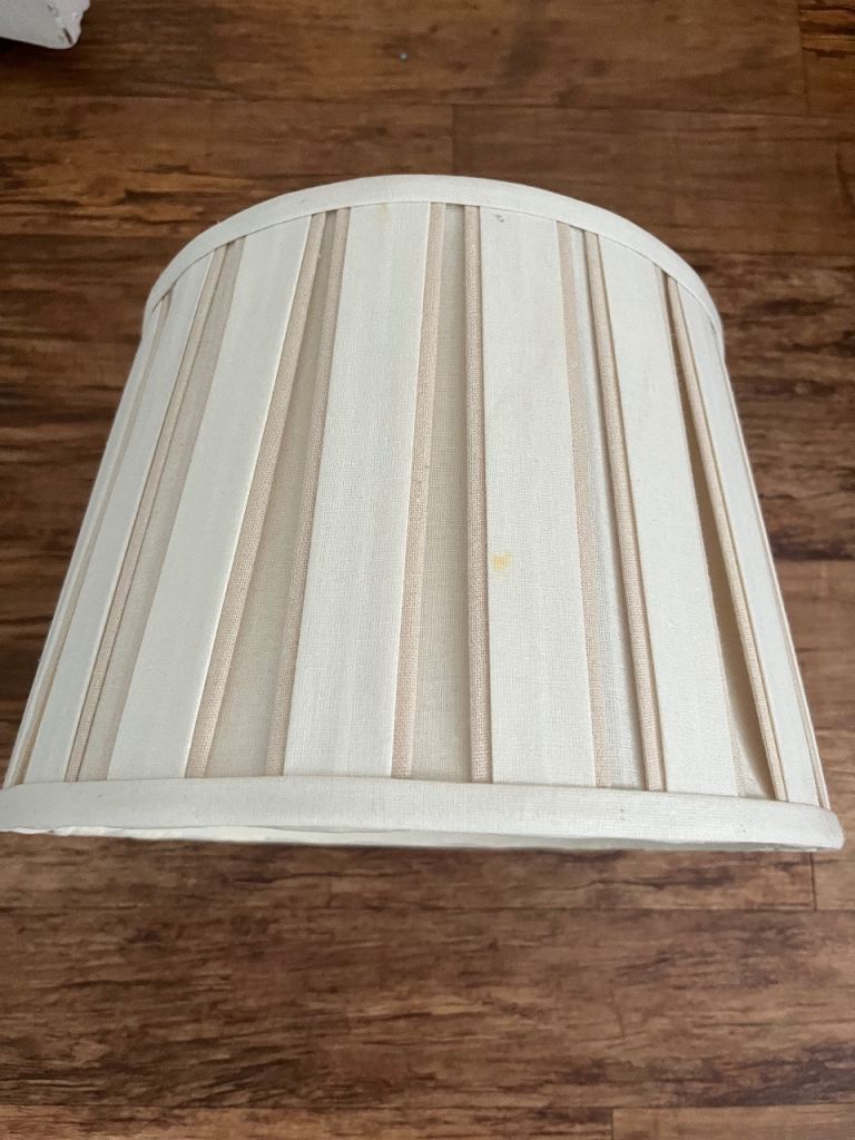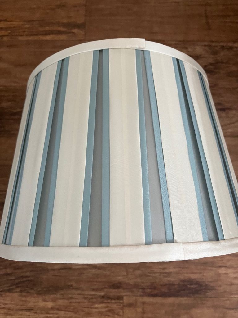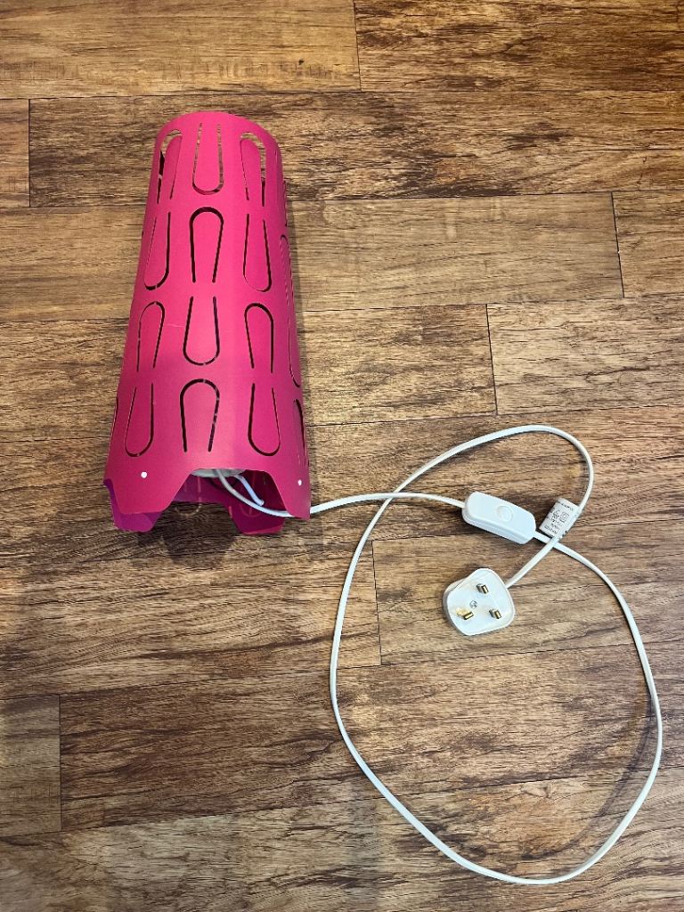 Ilea pink metal table lamp, as new condition full working order, with bulb. 2 light shades, one cream/beige the other blue/ beige, same design different colour. As new condition. Smoke free home. Collect Netherlee