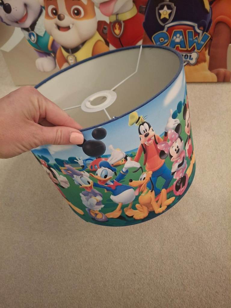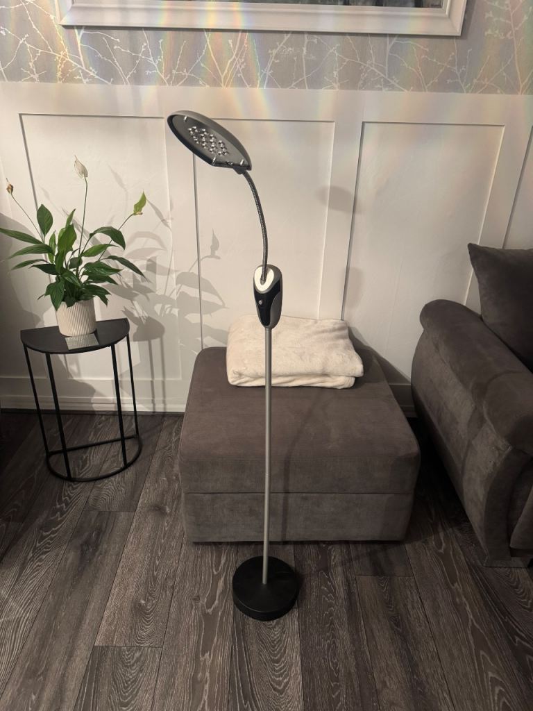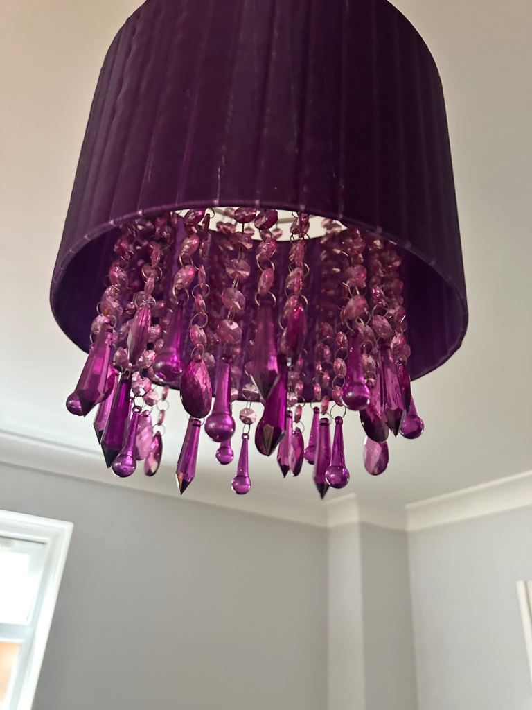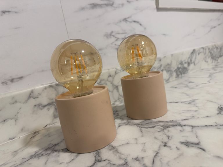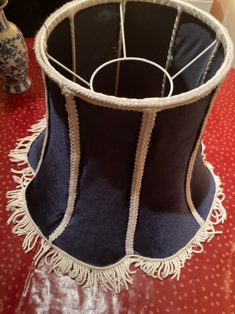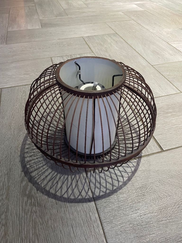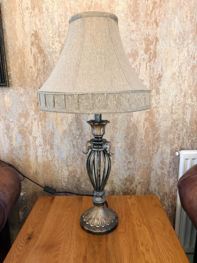 Cream colour linen type fabric shade with cream beige colour stand.