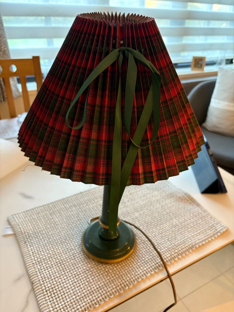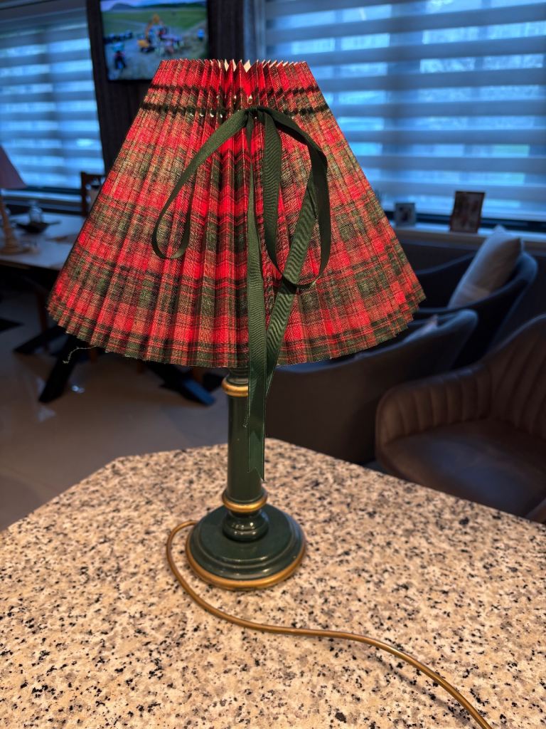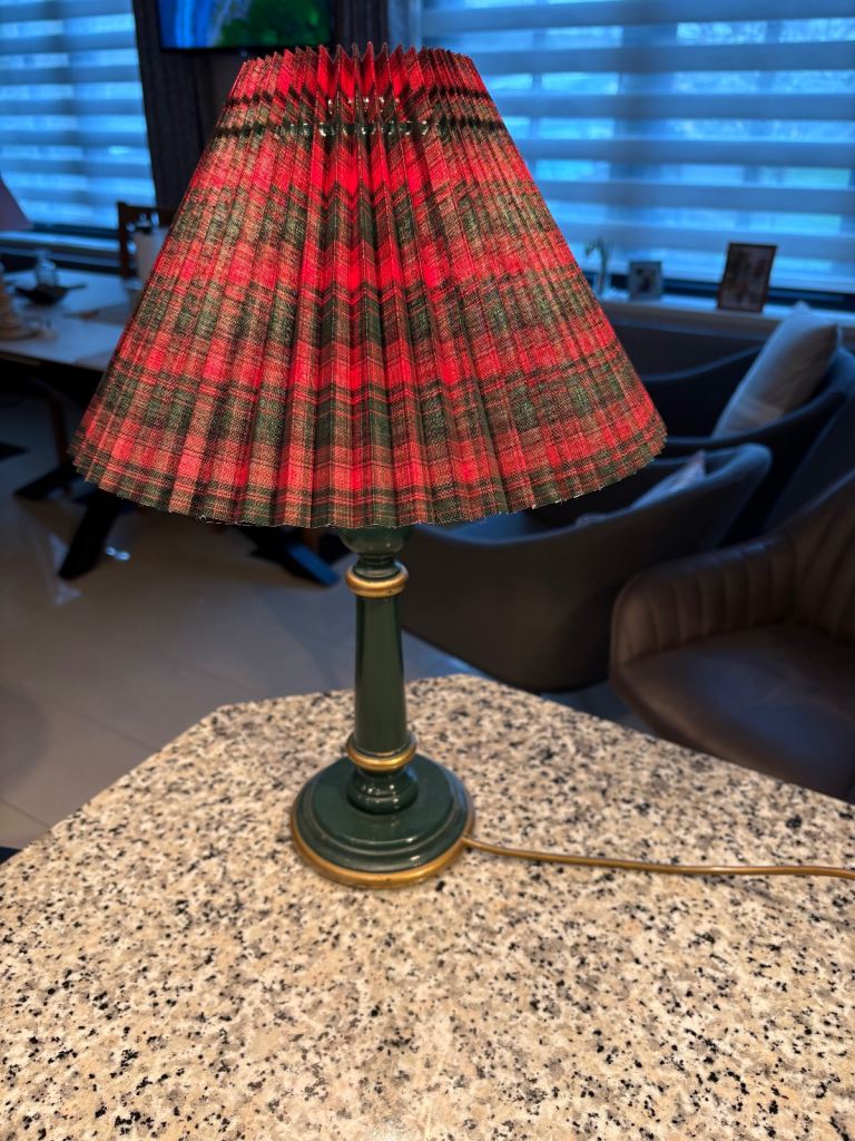 An elegant table lamp with a tartan shade and green base in very good condition and ideal for Christmas.