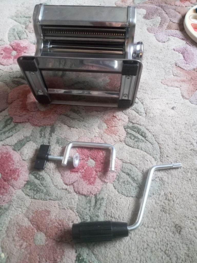 Pasta making machine in good working order. Rarely used & now surplus to requirements £15 or nearest offer. Hundreds of other kitchen utensils, gadgets, dinnerware (including oatmeal dinner sets) also for sale. Am relocating to the south coast & emptying the flat.
