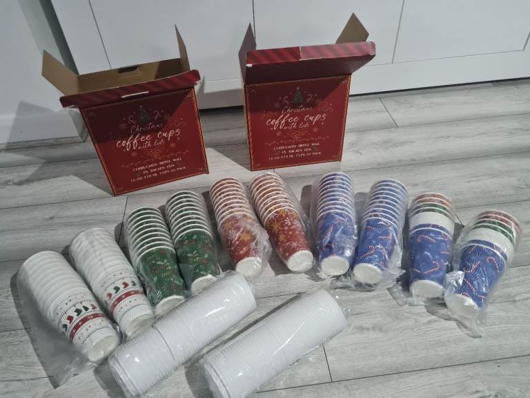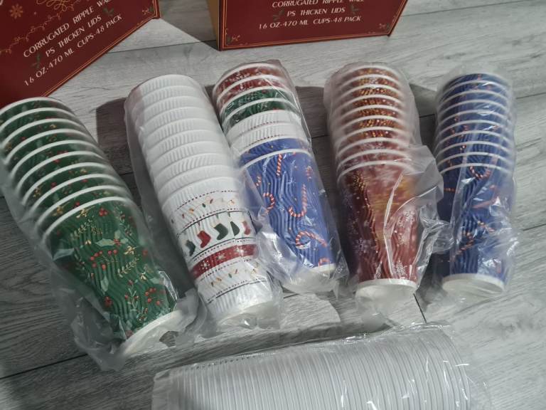 2x 48 pieces Christmas paper cup xmas party Disposable Christmas Cups Paper Coffee tea milk party