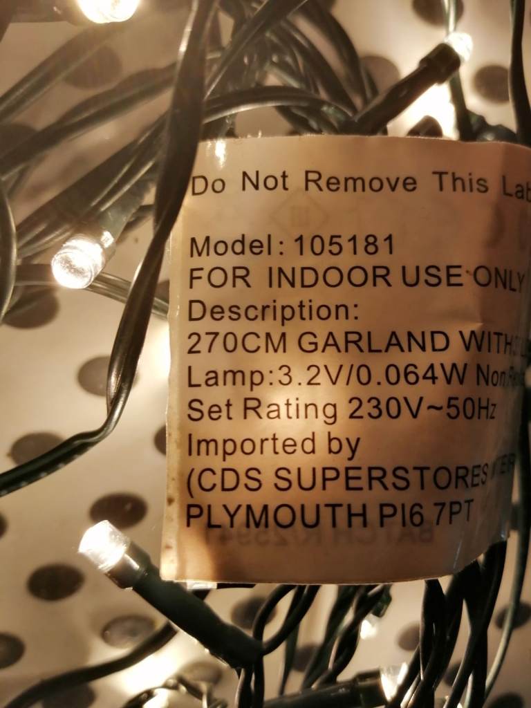270cm length. Imported by CDS Superstore Plymouth, safety label attached.