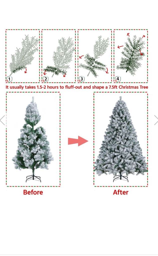 Snow Flocked Natural Look: Christmas is no fun without a glance of snow, this frosted artificial Christmas tree helps bring significant elements of this exciting holidays into your sweet home. The tree is hinged with plentiful branches and tips, which gives a full and fluffy look of the tree body. The lush tips and flocked snow are all lifelike with natural appearances, ready to make your Christmas a festive and unforgettable memory