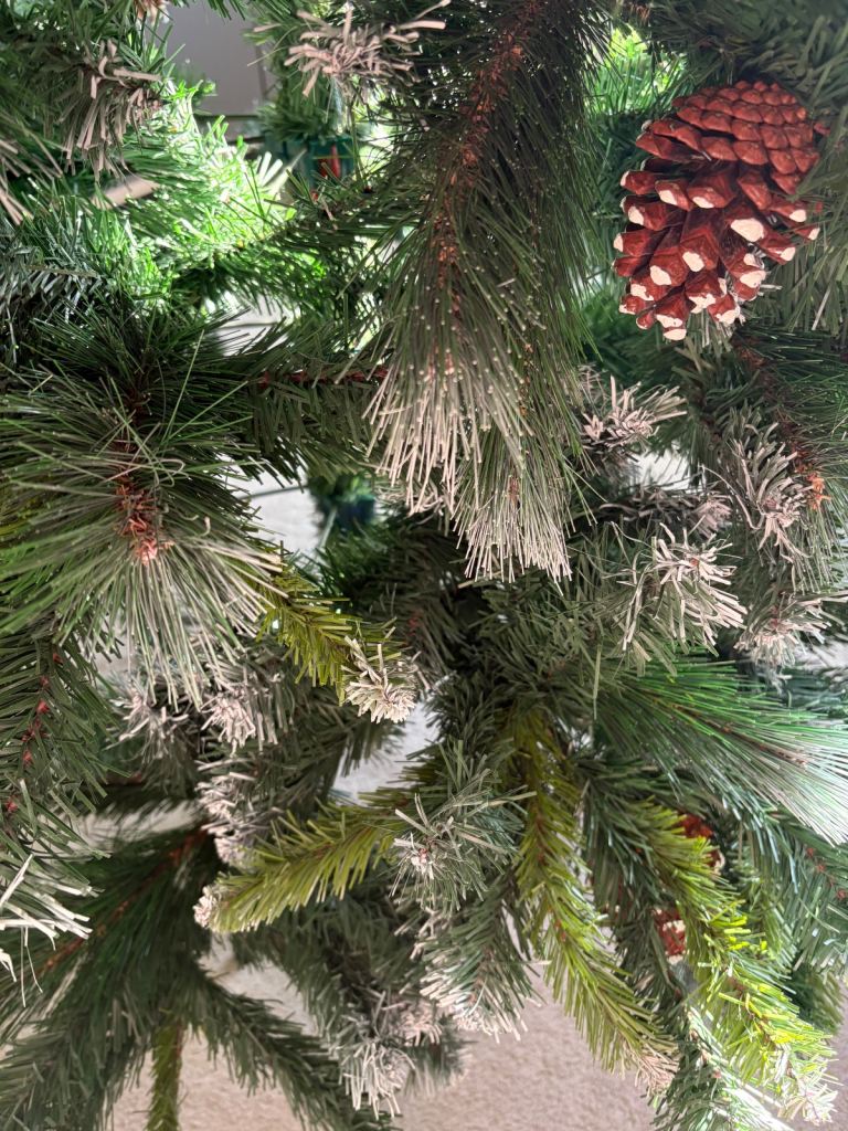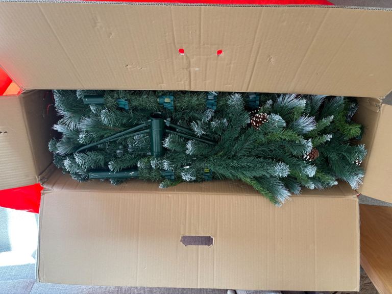 7ft Artificial Christmas Tree, Snow effect with pine cones, Excellent condition