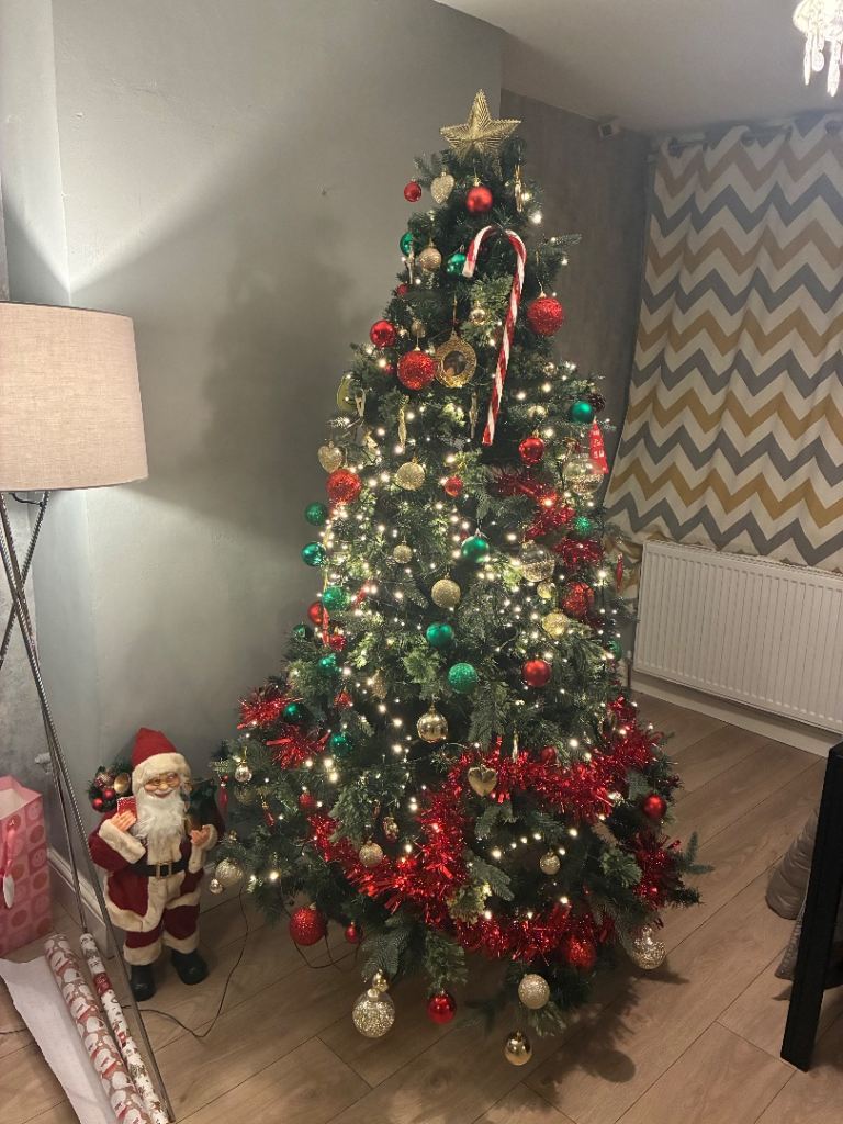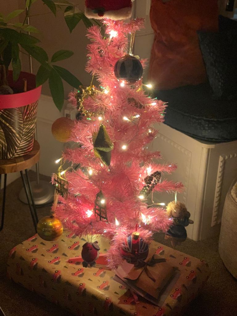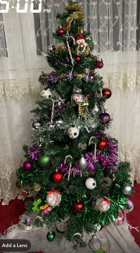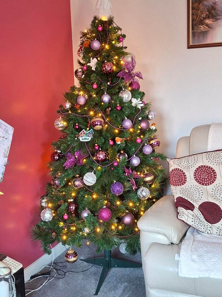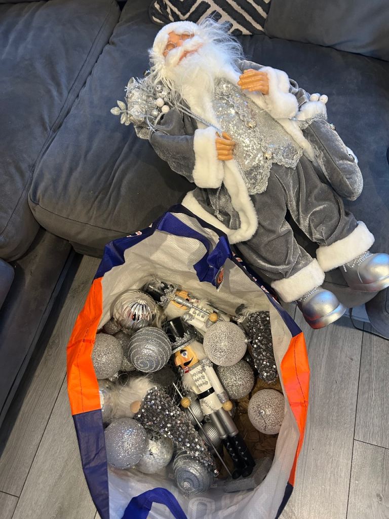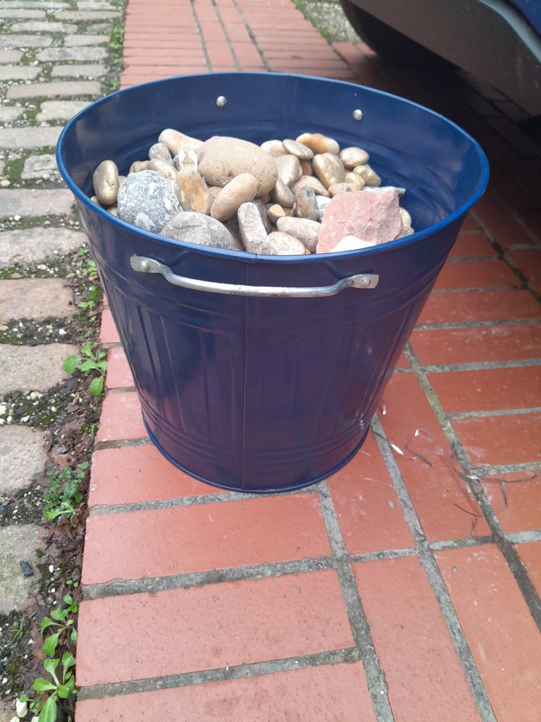 Posting for 13+ yearsAlternative Christmas tree stand and large Ikea navy metal bucketwith pebbles