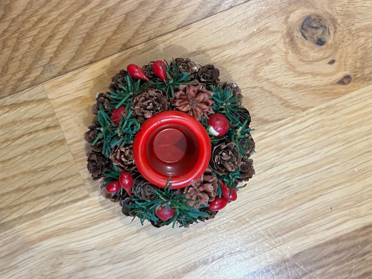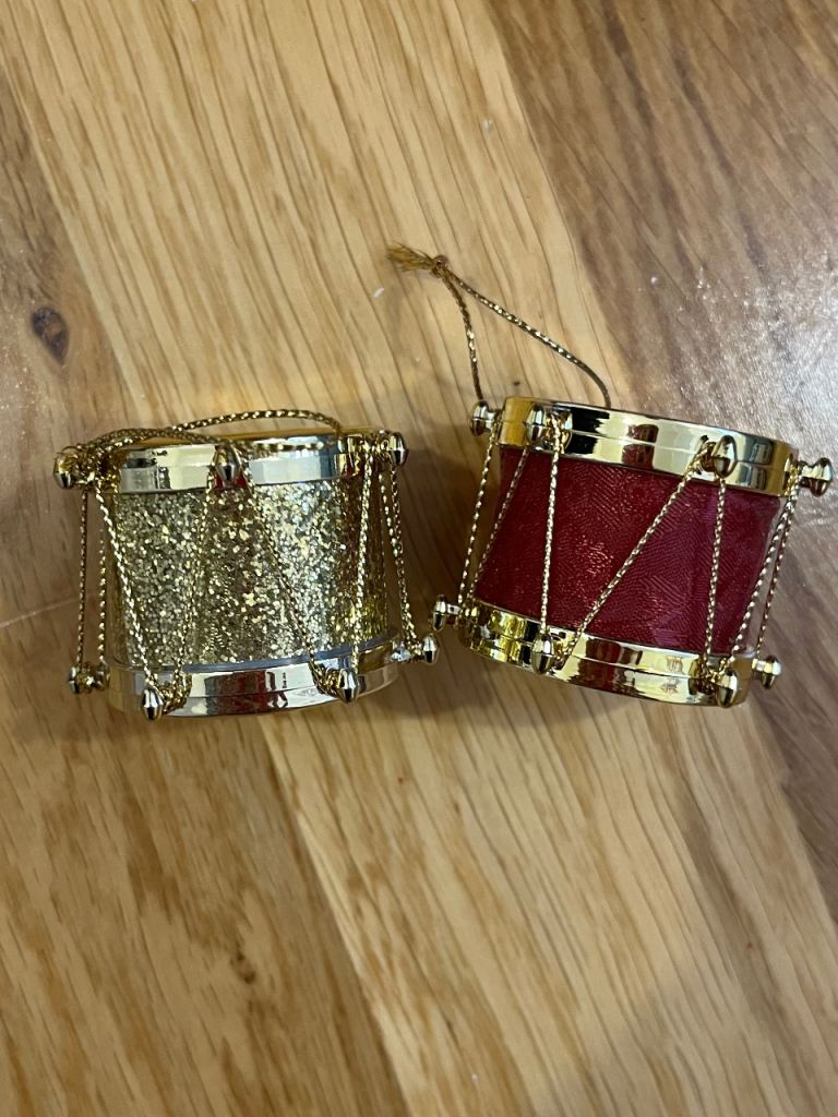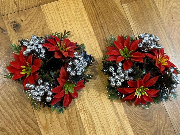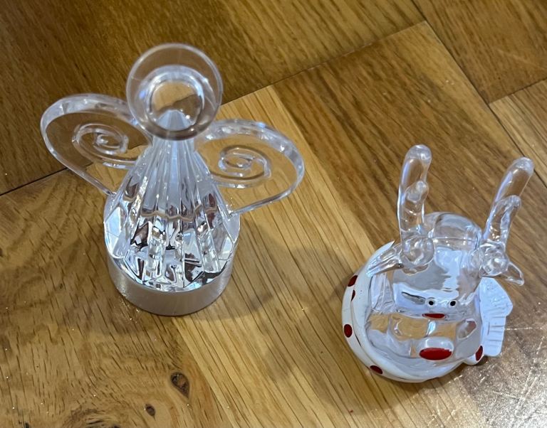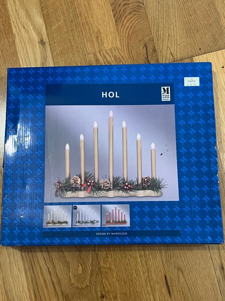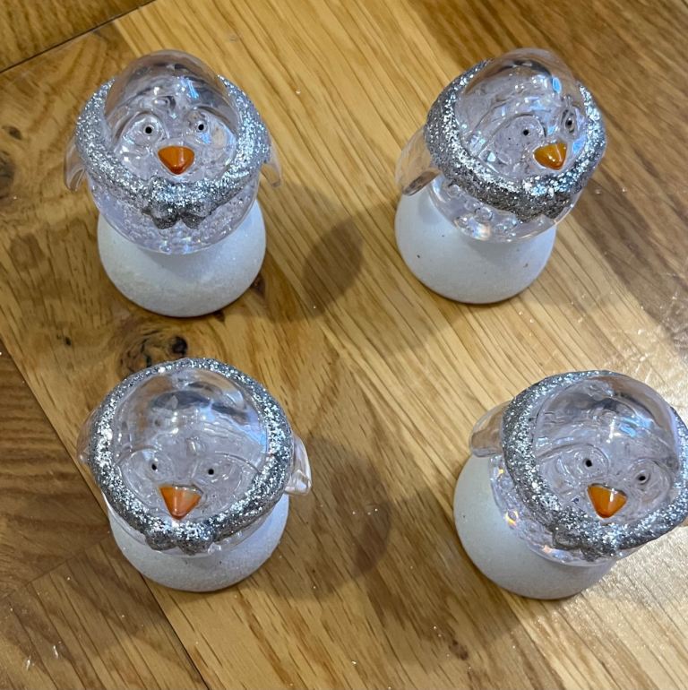 light up penguin s x 4, angel x 1, reindeer x 1, presents x 4; felt reindeer tree decoration; 1 x red drum & 1 x gold drum tree decorations; 3 x red & green candle holders.