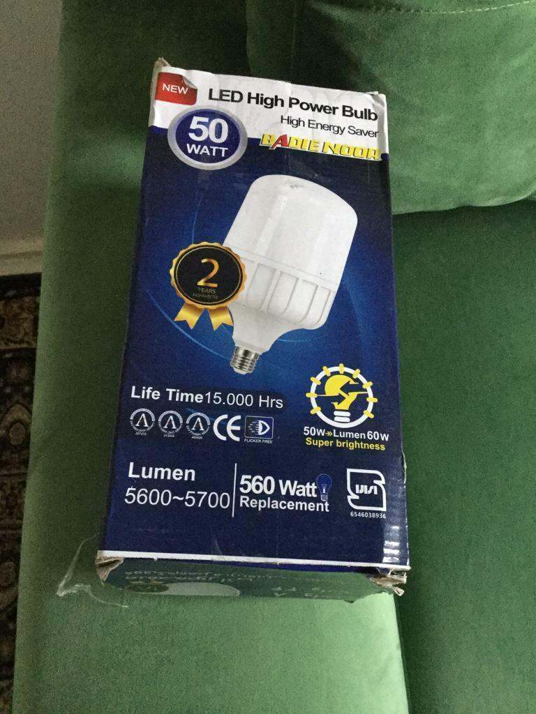 high power 50 w super energy saver LED bulb. never used , still has 2 years guarantee, good for outdoor or shops , I bought it for domestic use but it is too bright