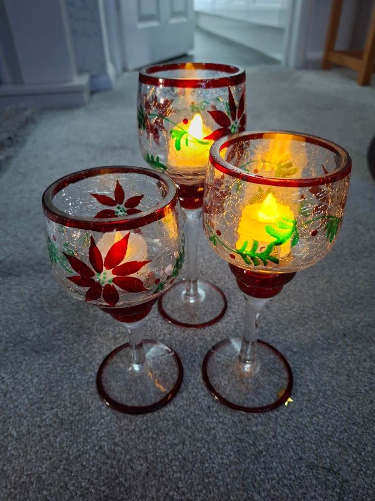 Beautiful candle holders. Have been used for 1 Christmas so as new & still in the box smoke and pet free home