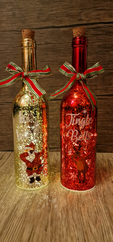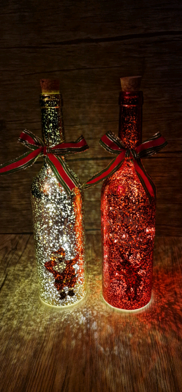 battery operated handmade Christmas bottles (santa & reindeer)