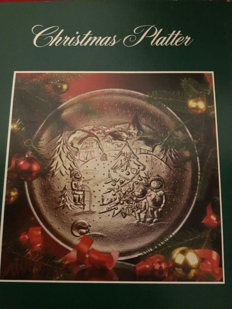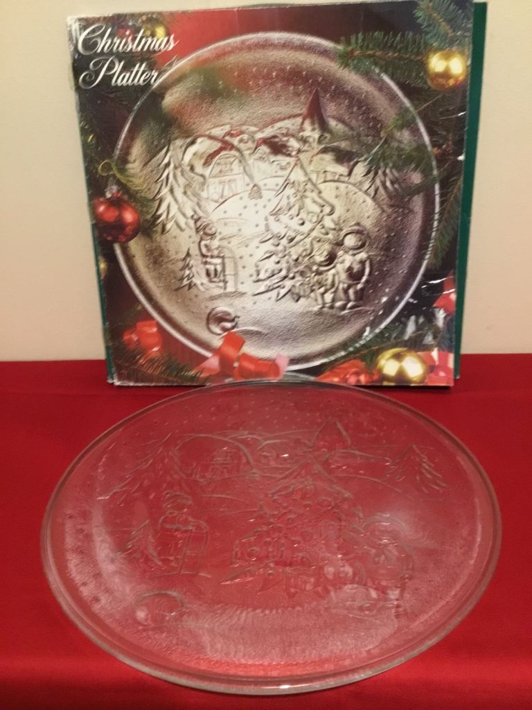 Heavy glass Christmas winter scene size 12” circle Original storage box