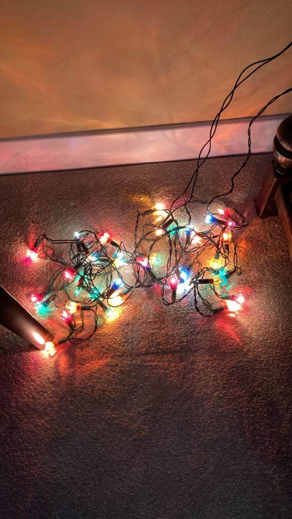 Christmas Kids Party Decorations includes 10 banner signs, 2 longer ceiling decorations and 2 smaller ones. 2 sets of lights as per photo. Baubles and beads. Also unopened plastic table cloth.