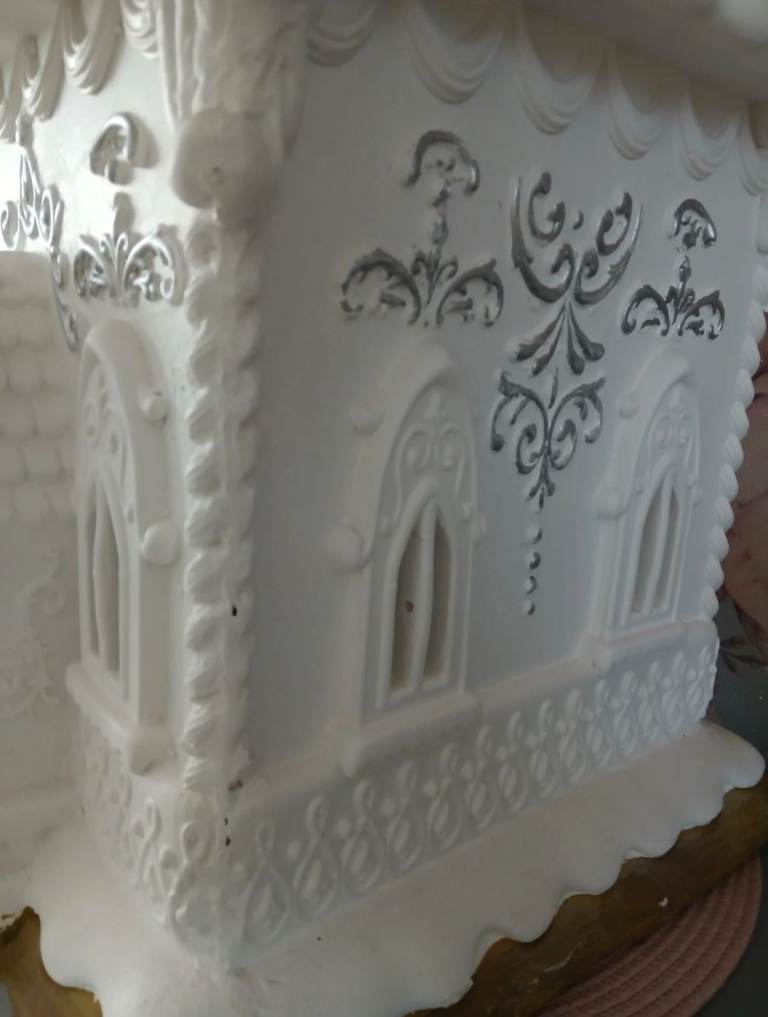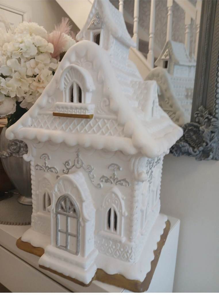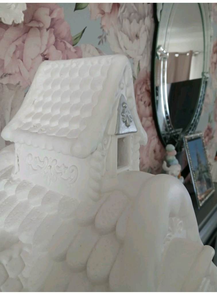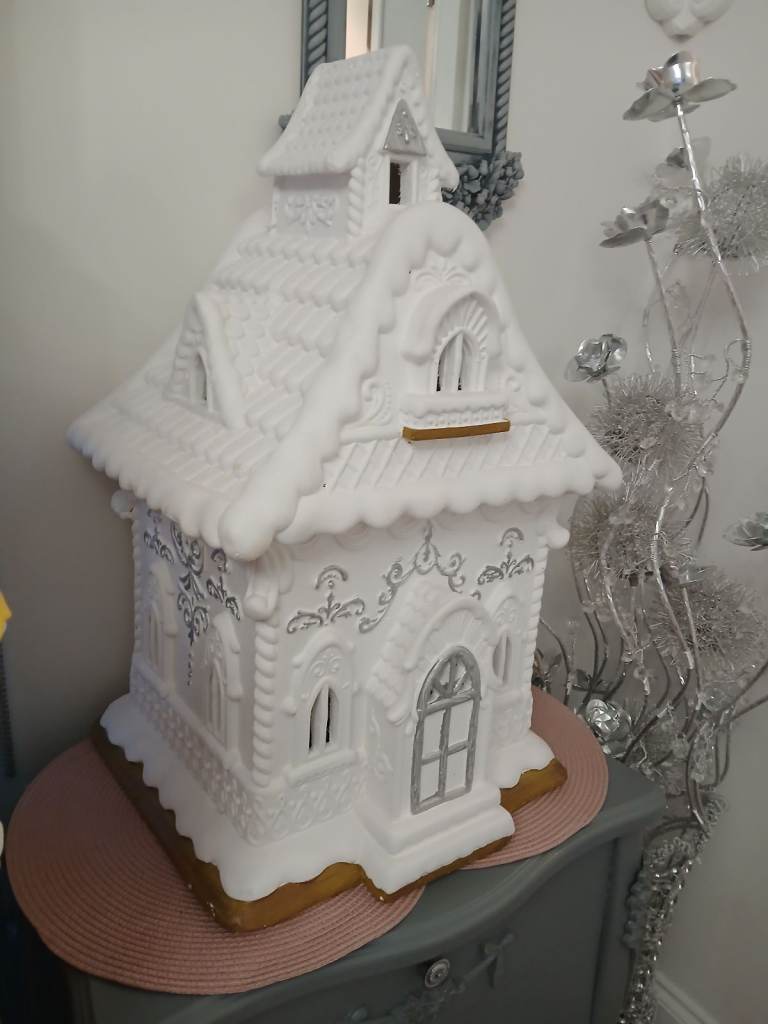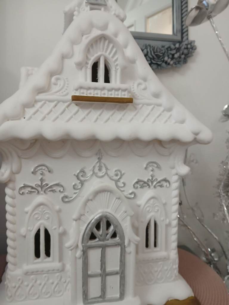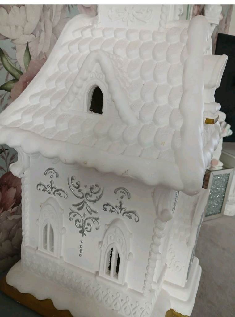 Beautiful white and silver large house.Lights up using batteries.Couple of little scuffs to paint but overall good condition.Collection only- have a look at my other ads