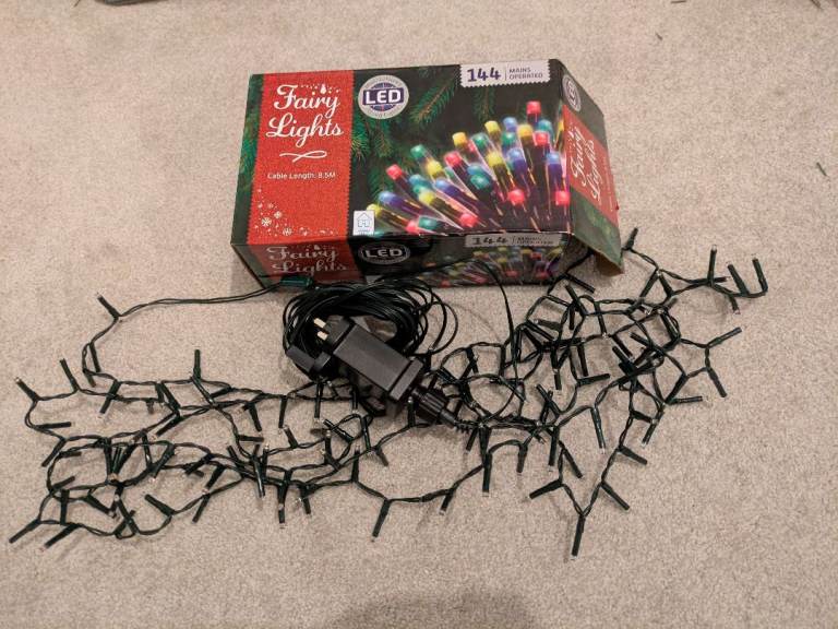 144 LED fairy lights, multi coloured, mains operated.
