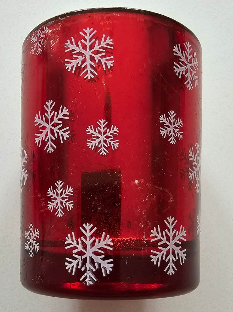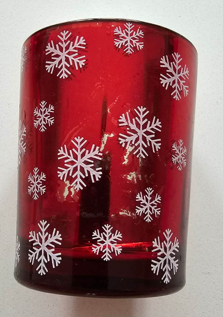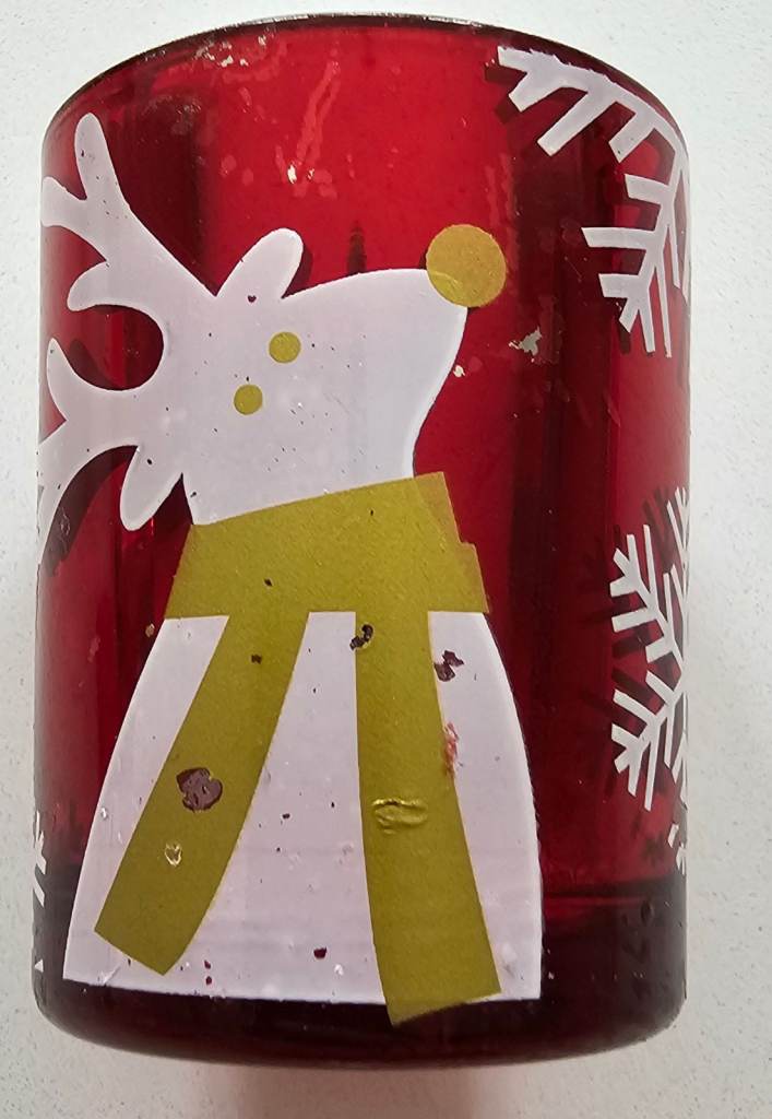Christmas tea light holders x 4 in red with reindeer and snowflake design