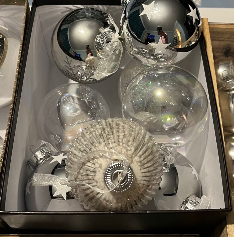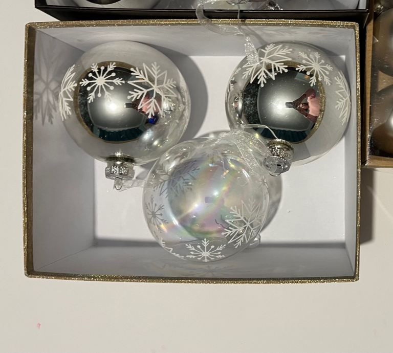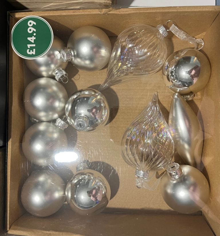 Christmas tree baubles shades of silver and some clear from Dobbies:, 3 Large,