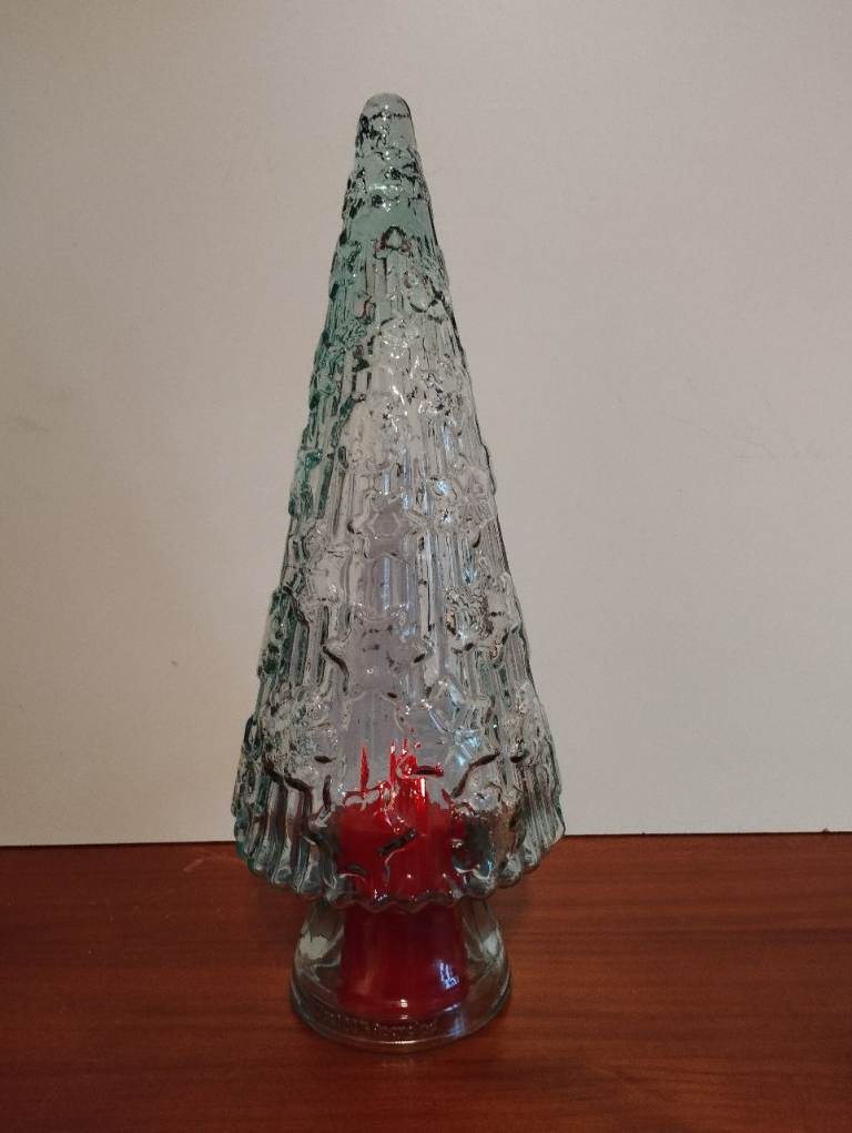 Christmas tree made of glass decorated with stars, bows, and other Christmas motives