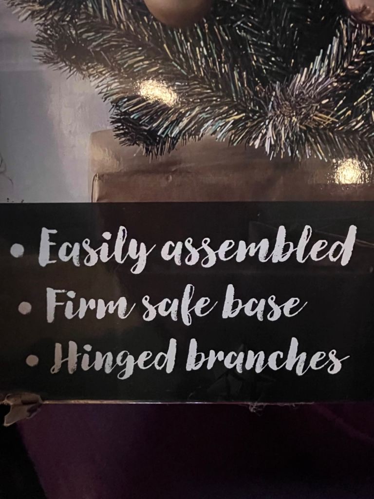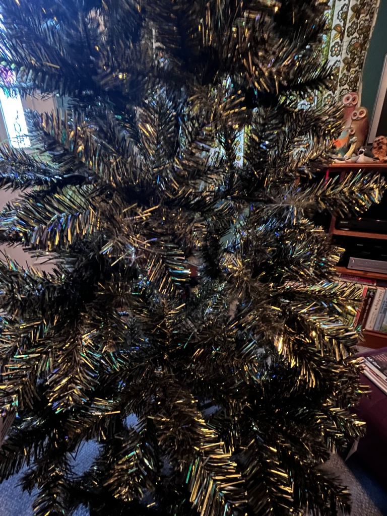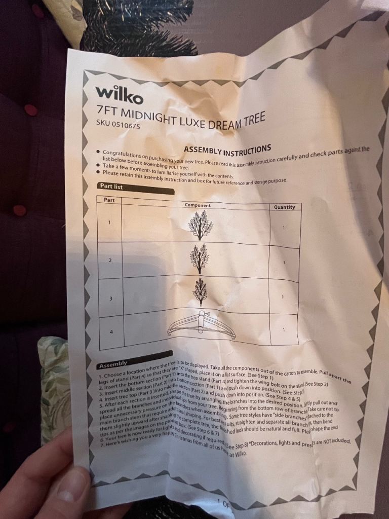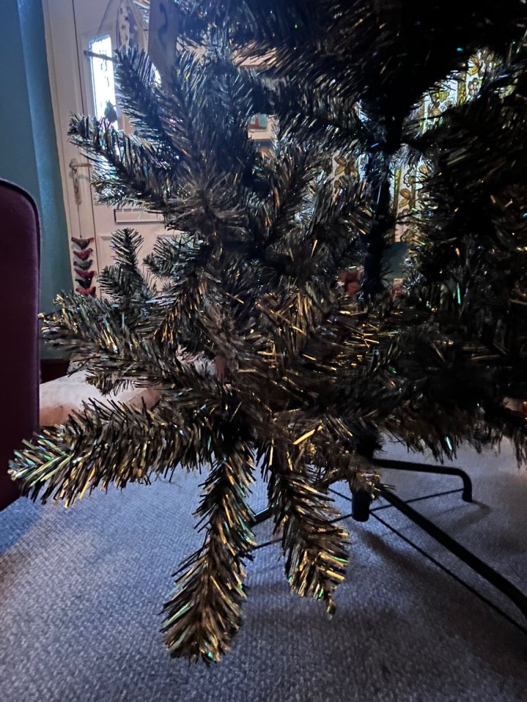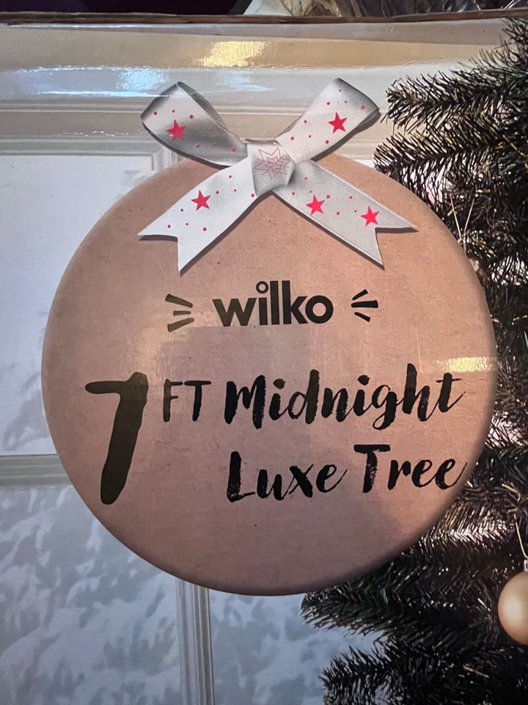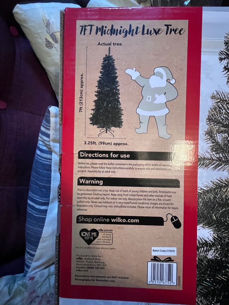Wilko 7ft Midnight Luxe (tinsel) Christmas Tree. Easily assembled, hinged branches. Brand new, never used. Only assembled to take photos. Complete with box.