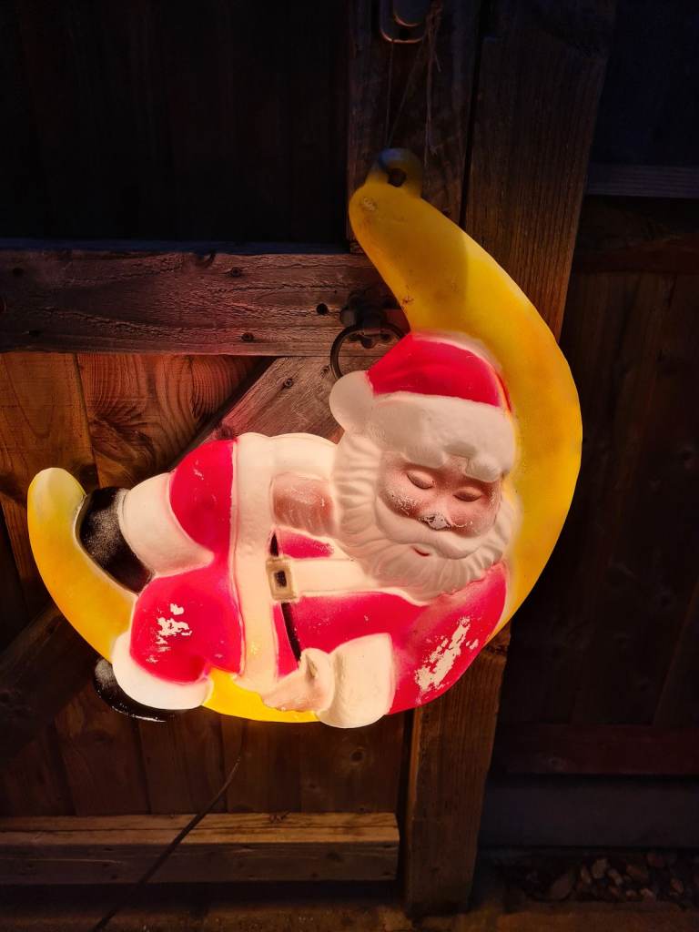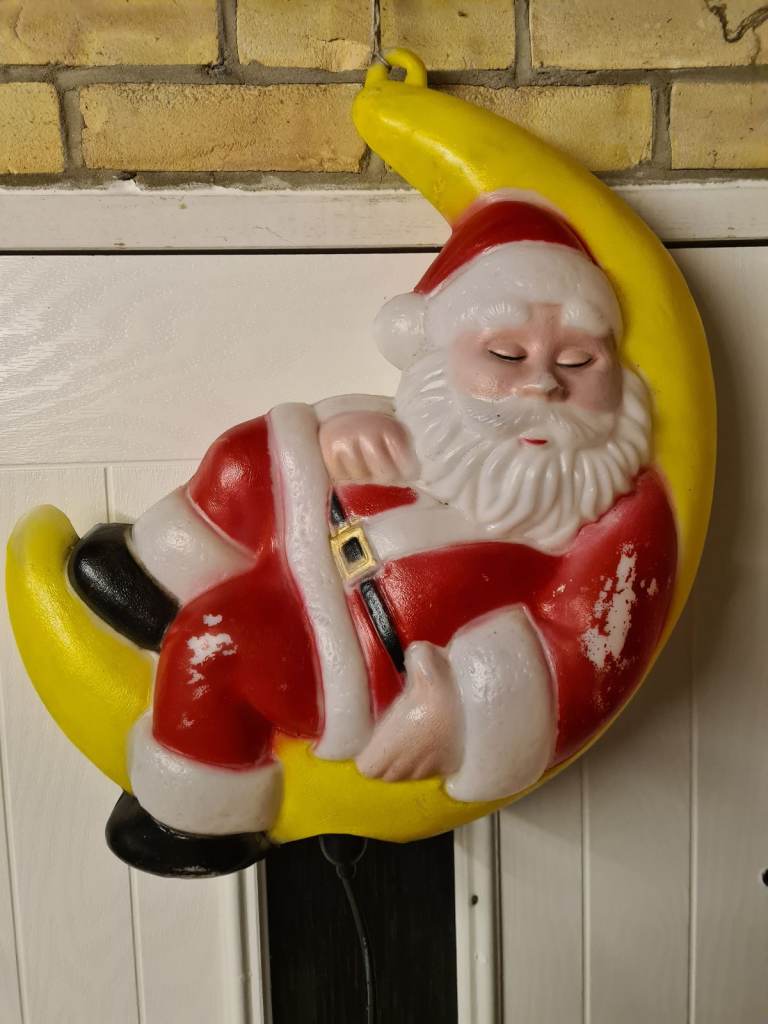 Outdoor Father Christmas sitting on the moon, designed to be hung.