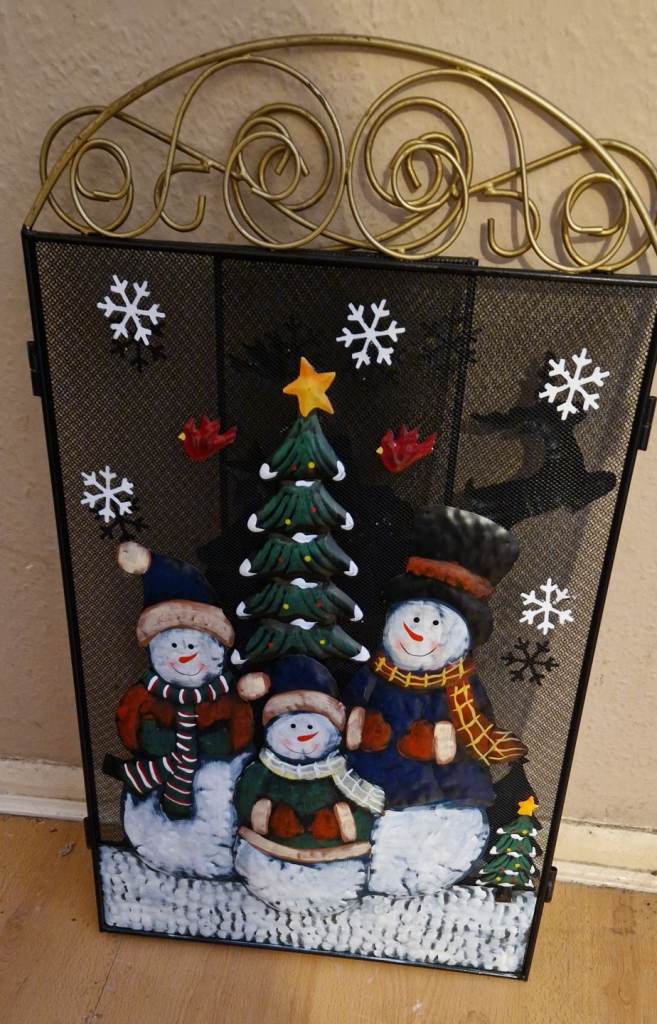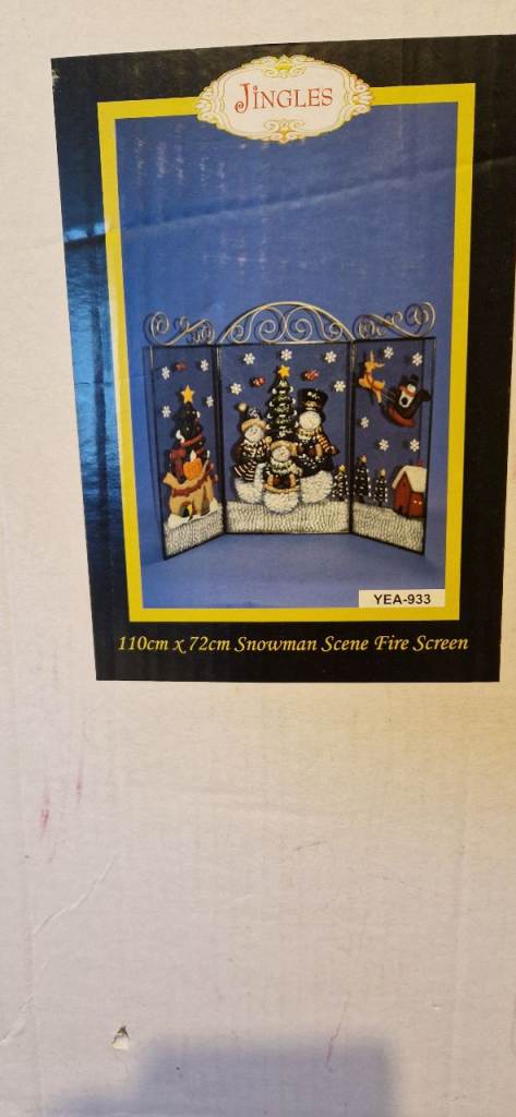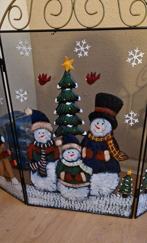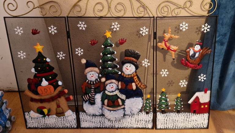 Really pretty festive fireguard.. great condition.. 3D with the trees and snowmen etc sitting out from the plain background
