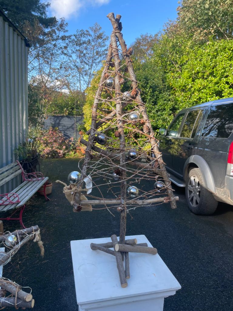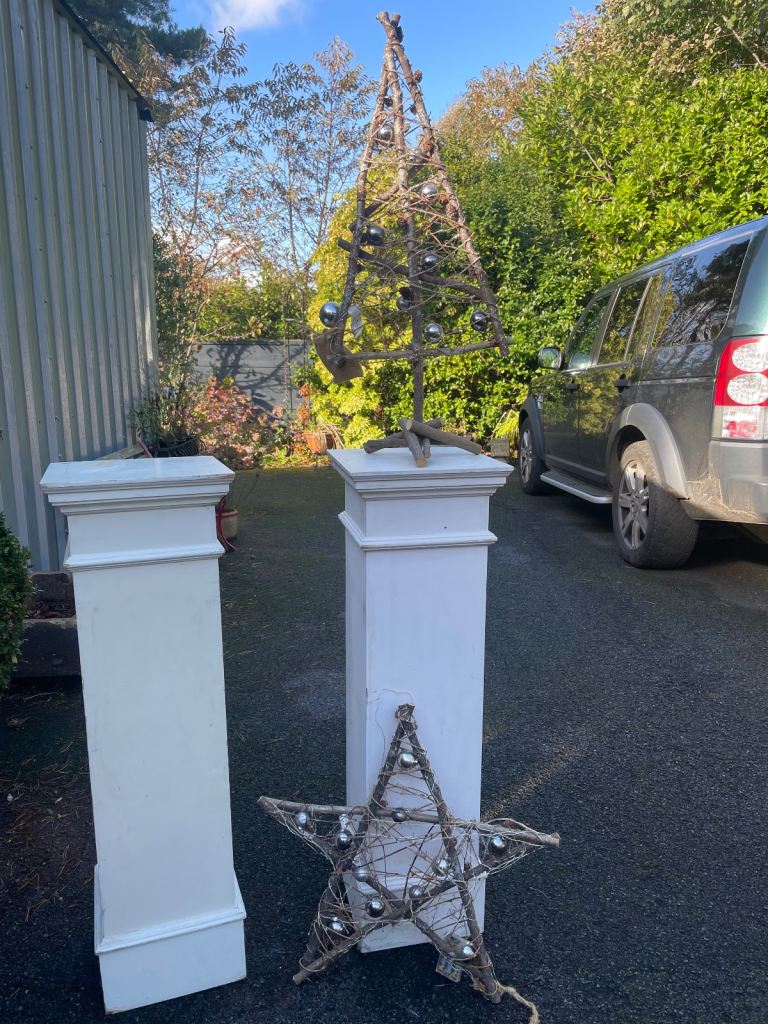 Handmade outdoor rustic Xmas tree and wooden star LED lighting