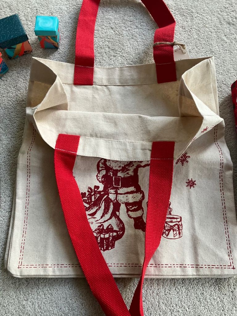 Ho the Ho Ho Christmas canvas bag/3 small gift boxes/Felt roll/Dad Xmas card. New