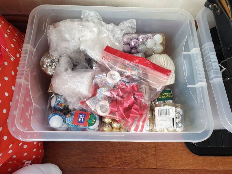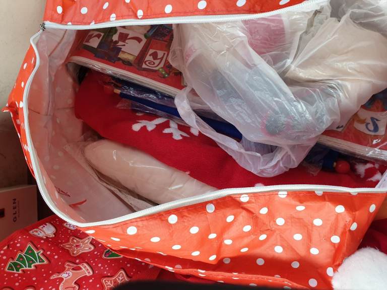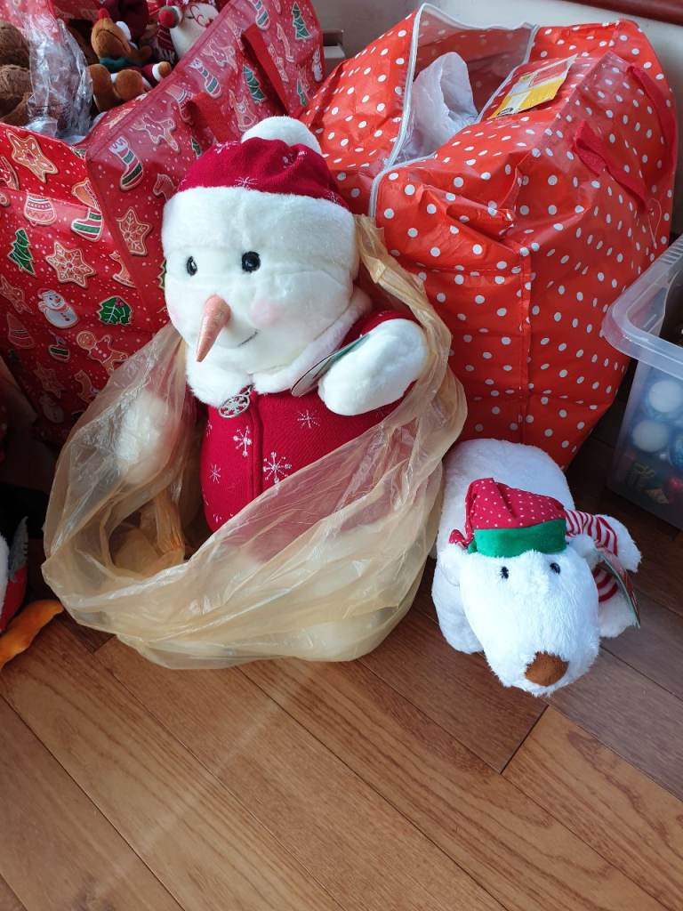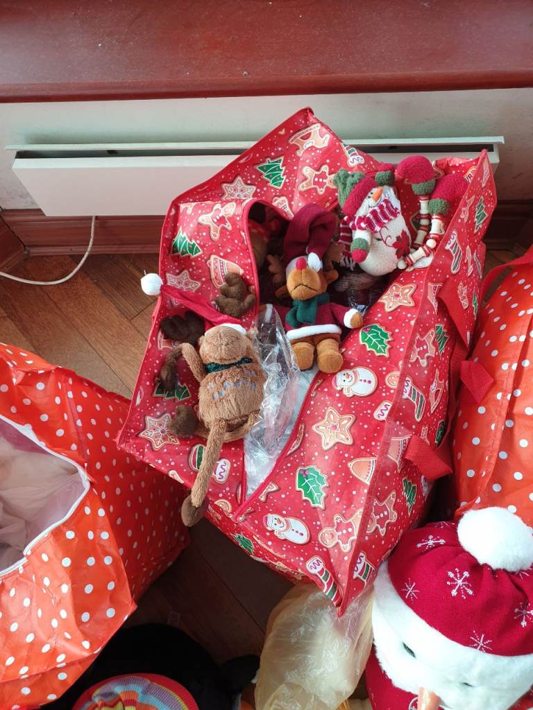 There's a Christmas tree, soft toys, decorations, wrapping paper, loads of stuff here, and all too good to go to waste.