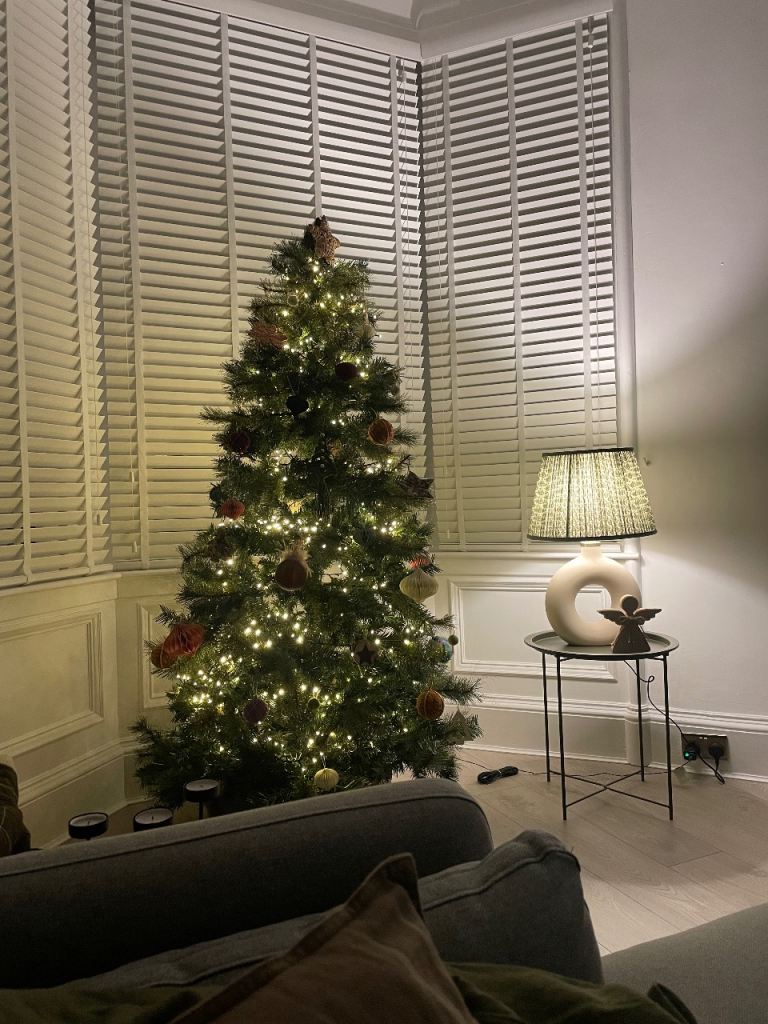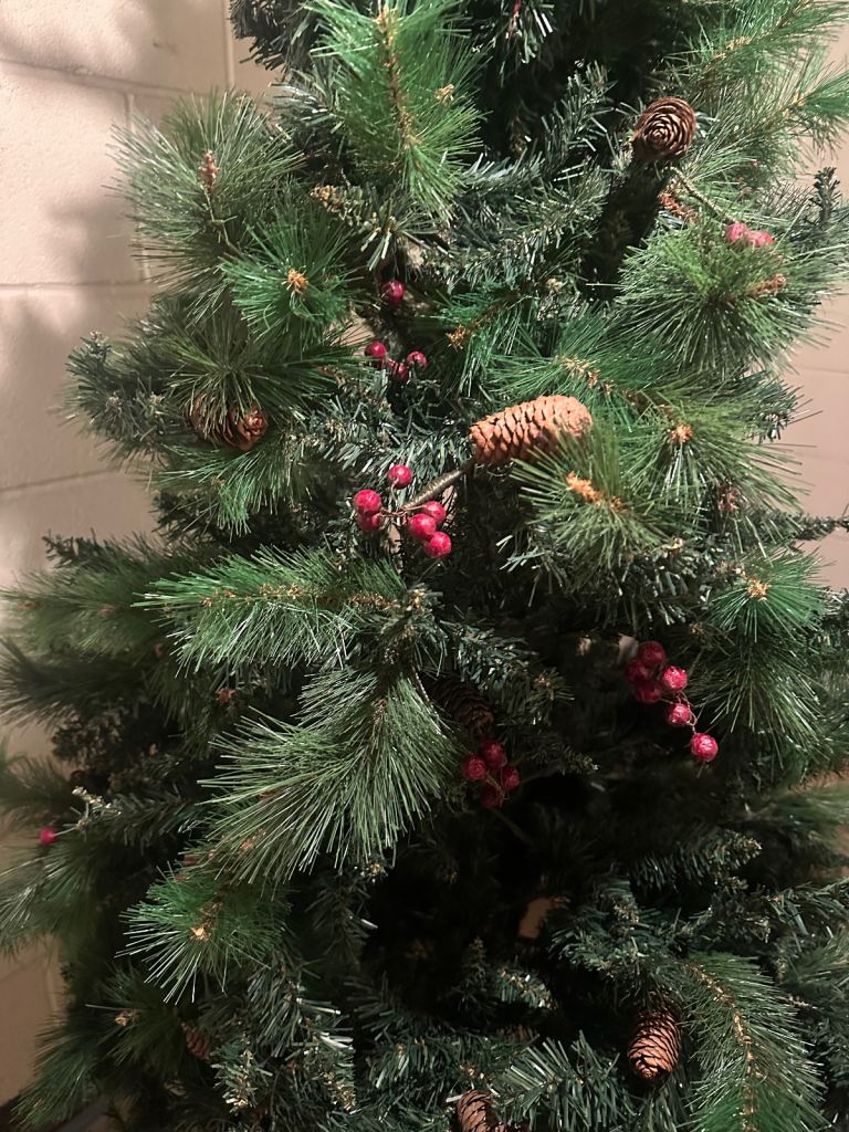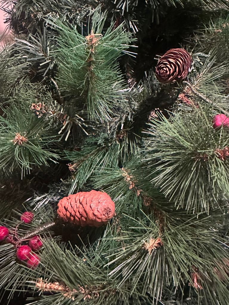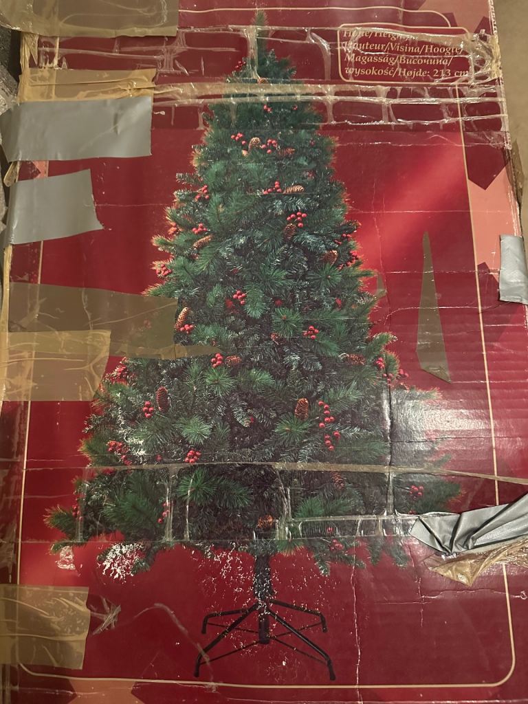 Luxury 6ft Christmas tree with metal stand, pine cones & berries