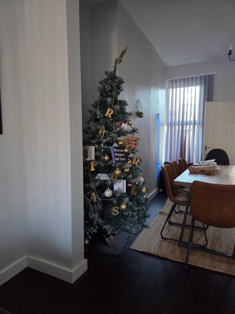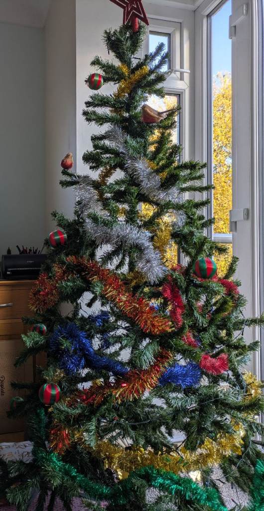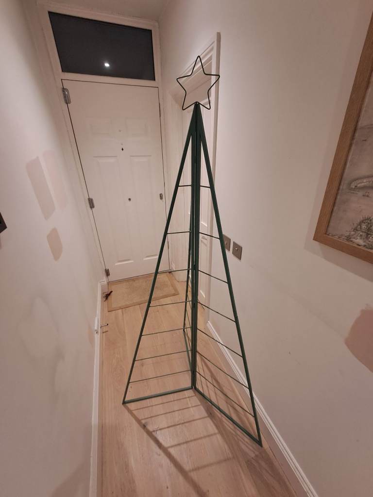 Metal folding collapsible Christmas tree alternative to a real tree. Great for hanging ornaments on