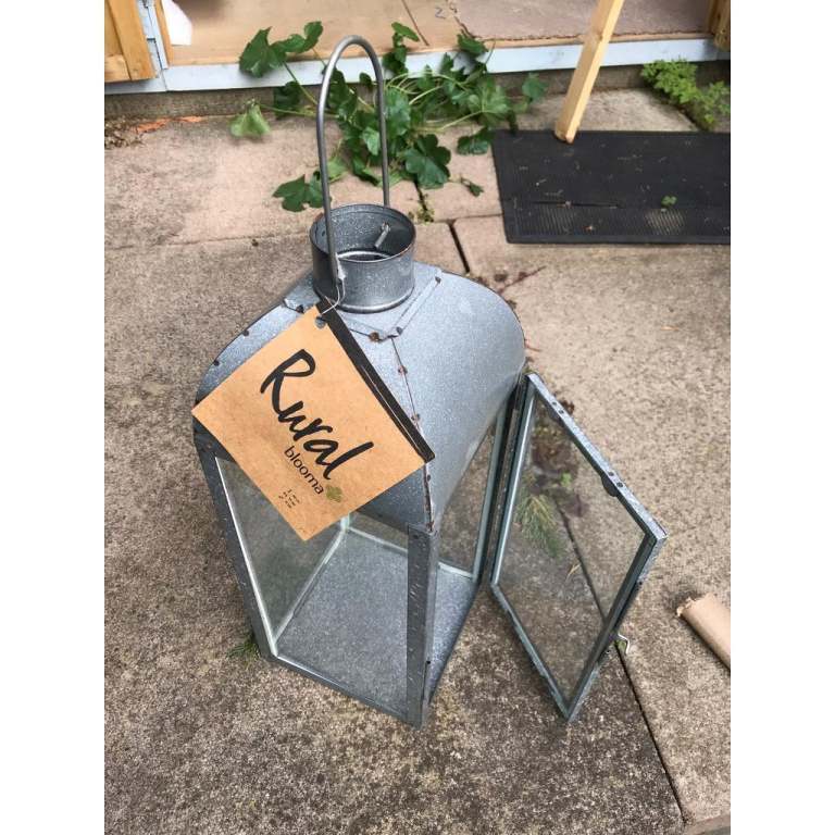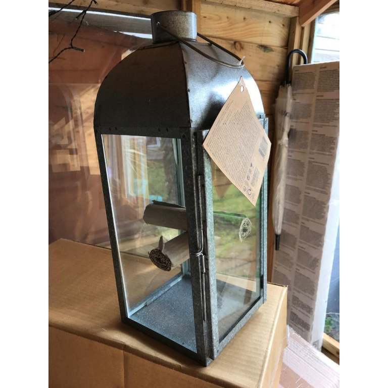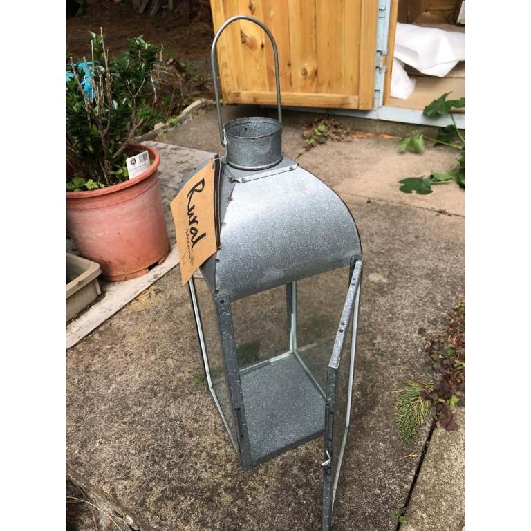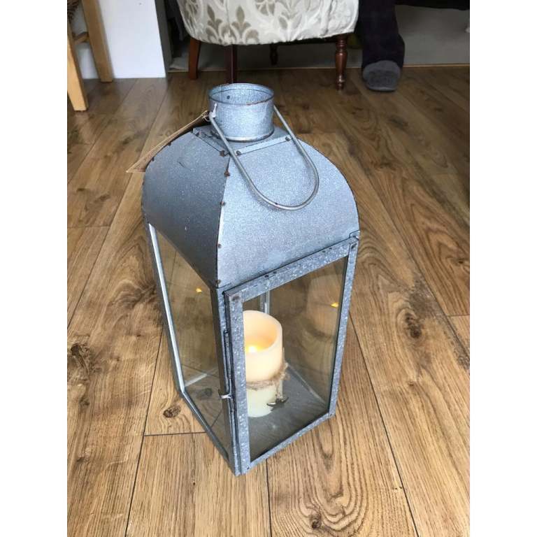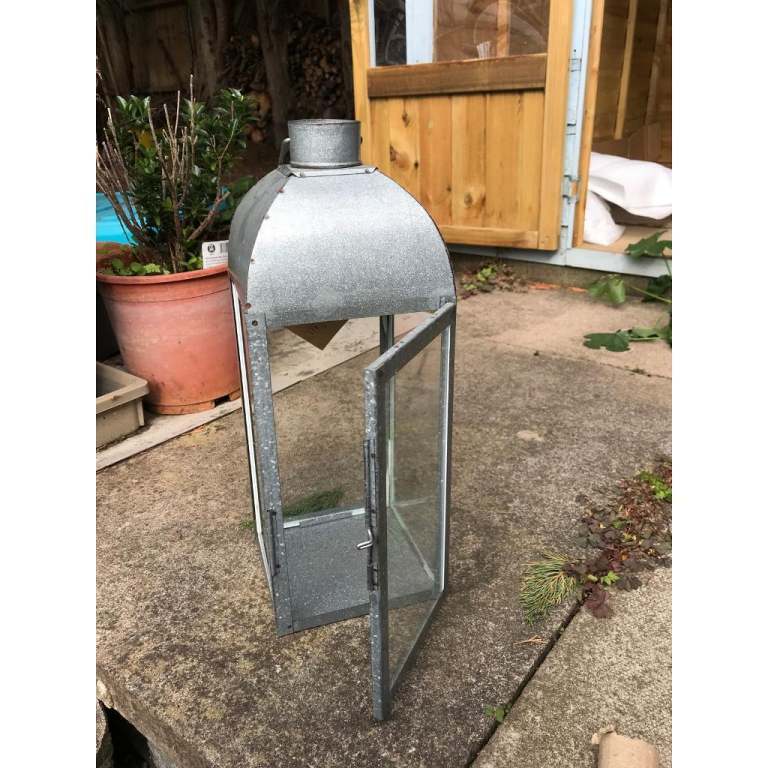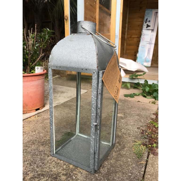 New Large galvanised steel & glass candle lantern outdoor/indoor. NEW