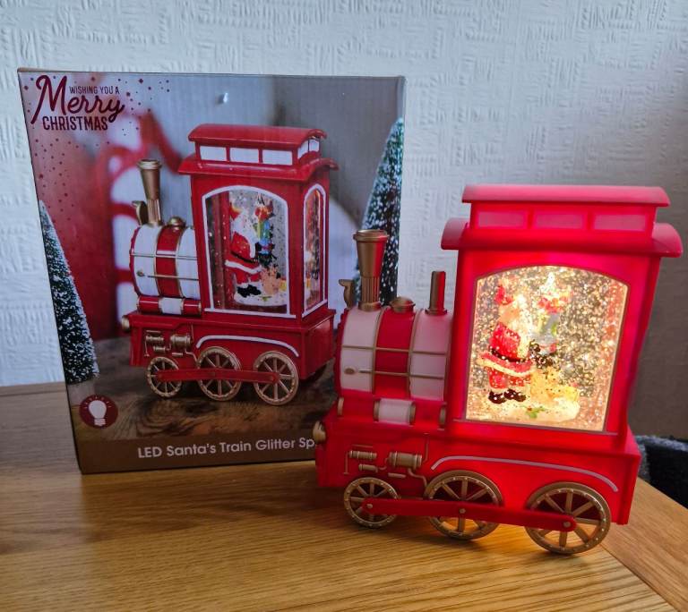 Santa Glitter Globe and Santa Glitter Train, bought this Xmas. Battery Operated and complete with box. Excellent condition. £10 for bitb.