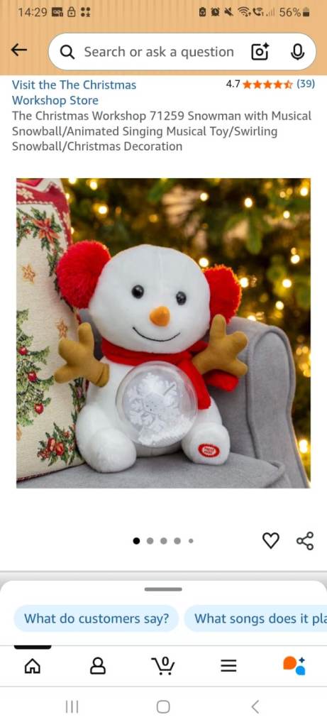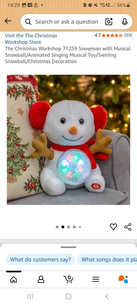 The Christmas Workshop 71259 Snowman with Musical Snowball/Animated Singing Musical Toy/Swirling Snowball/Christmas Decoration