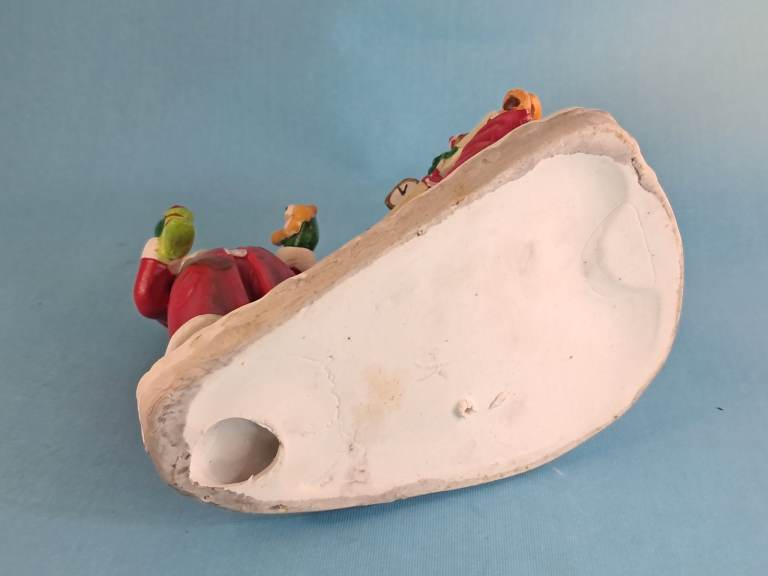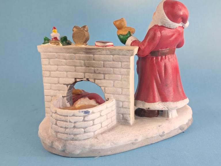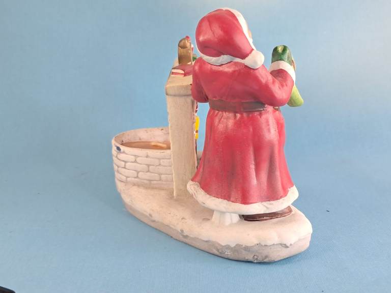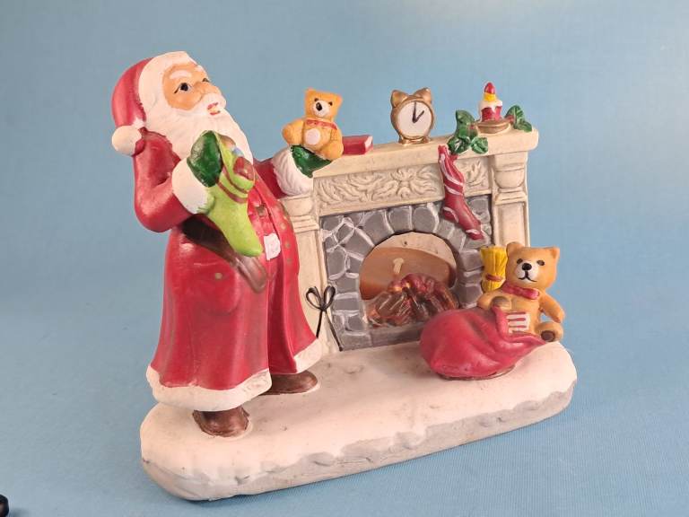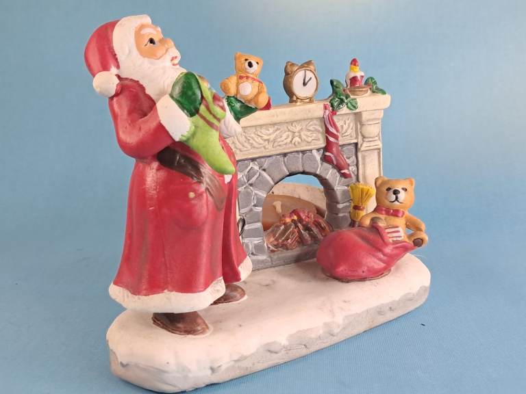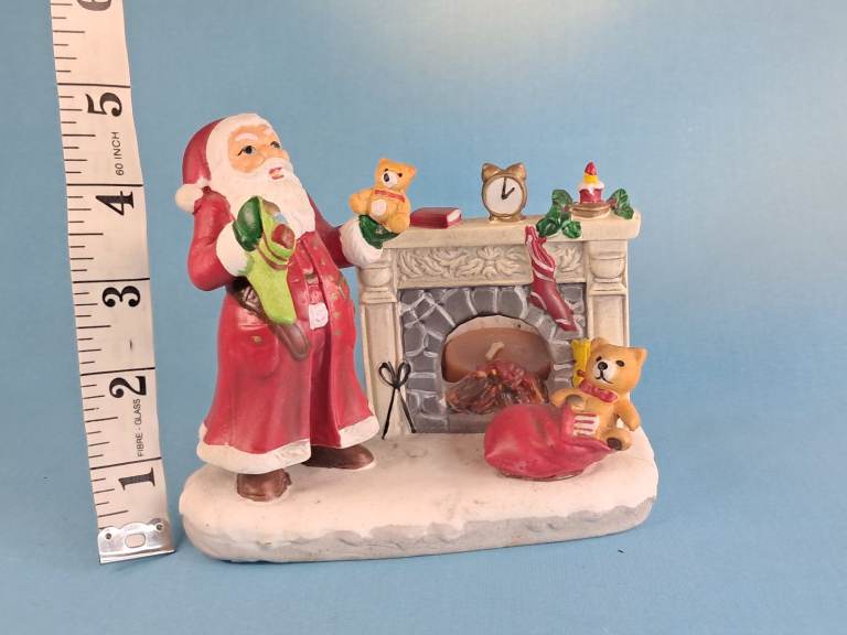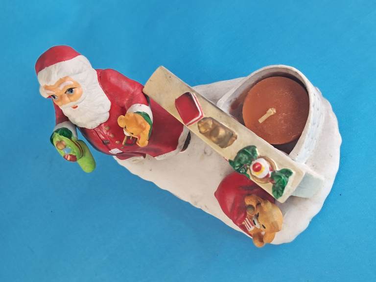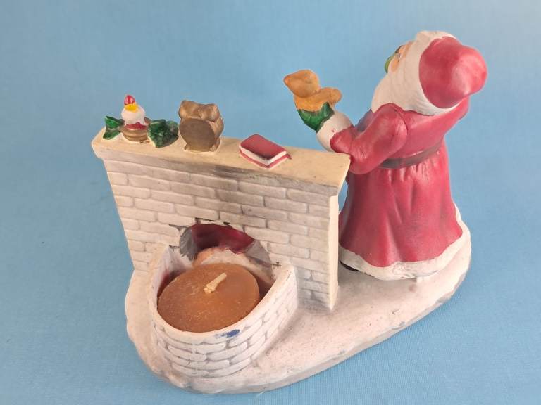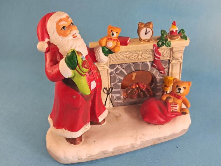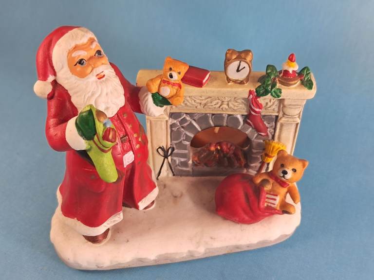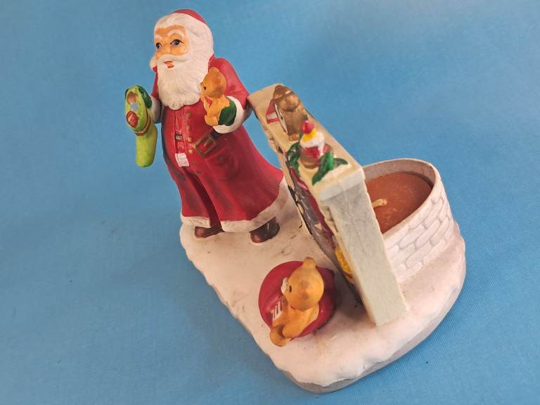 Vintage, Ceramic Old Saint Nick Christmas Candle Holder Santa Claus by Fireplace.